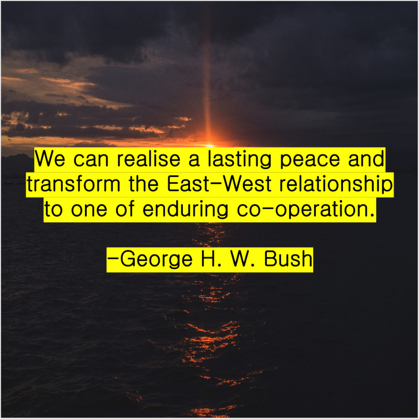 George H. W. Bush George H. W. Bush – We can realise a lasting… February 7, 2019 admin “We can realise a lasting peace and transform the East-West relationship to one of enduring co-operation.”-George H. W. Bush
