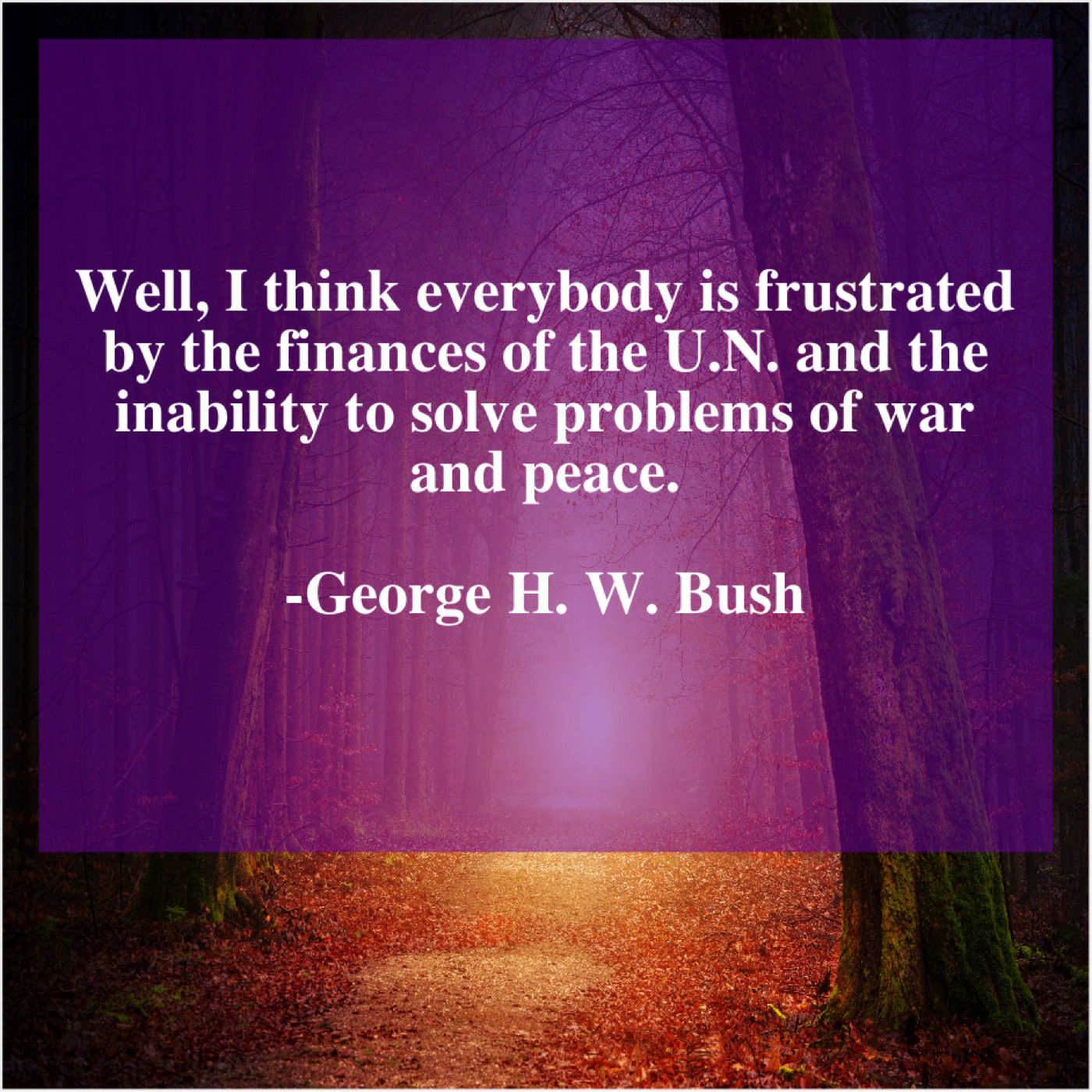 George H. W. Bush George H. W. Bush – Well, I think everybody is… August 24, 2019 admin “Well, I think everybody is frustrated by the finances of the U.N. and the inability to solve problems of war and peace.”-George H. W. Bush