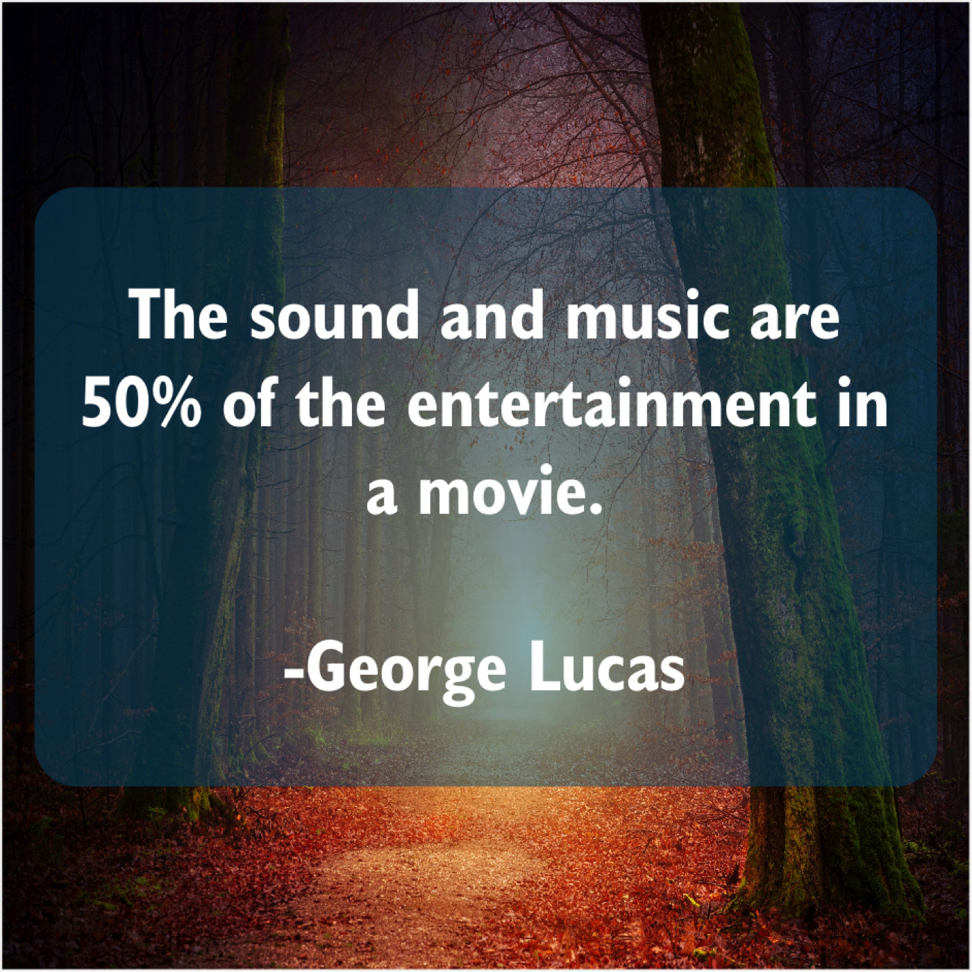 George Lucas George Lucas – The sound and music are… September 10, 2019 admin “The sound and music are 50% of the entertainment in a movie.”-George Lucas