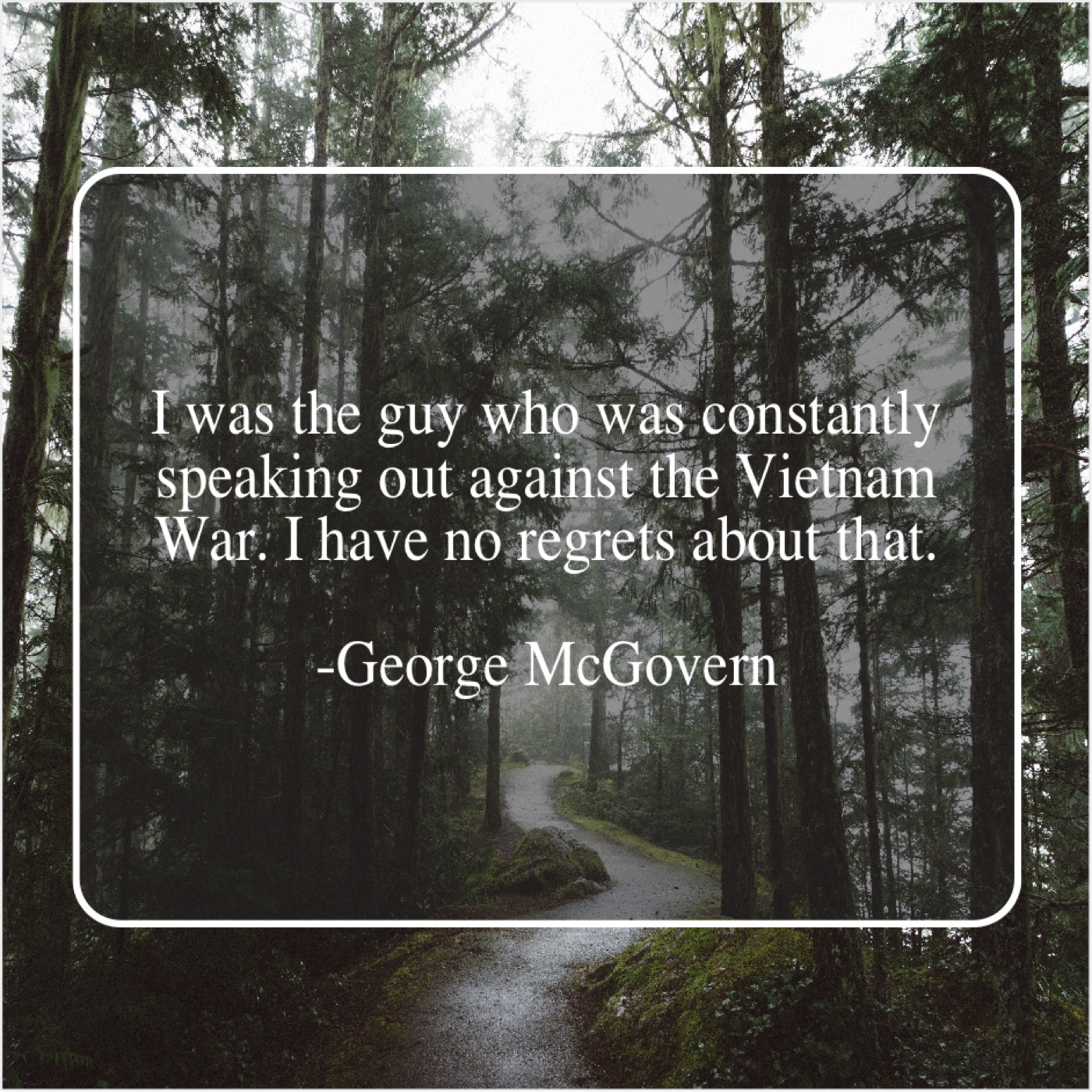 George McGovern George McGovern – I was the guy who… June 30, 2019 admin “I was the guy who was constantly speaking out against the Vietnam War. I have no regrets about that.”-George McGovern