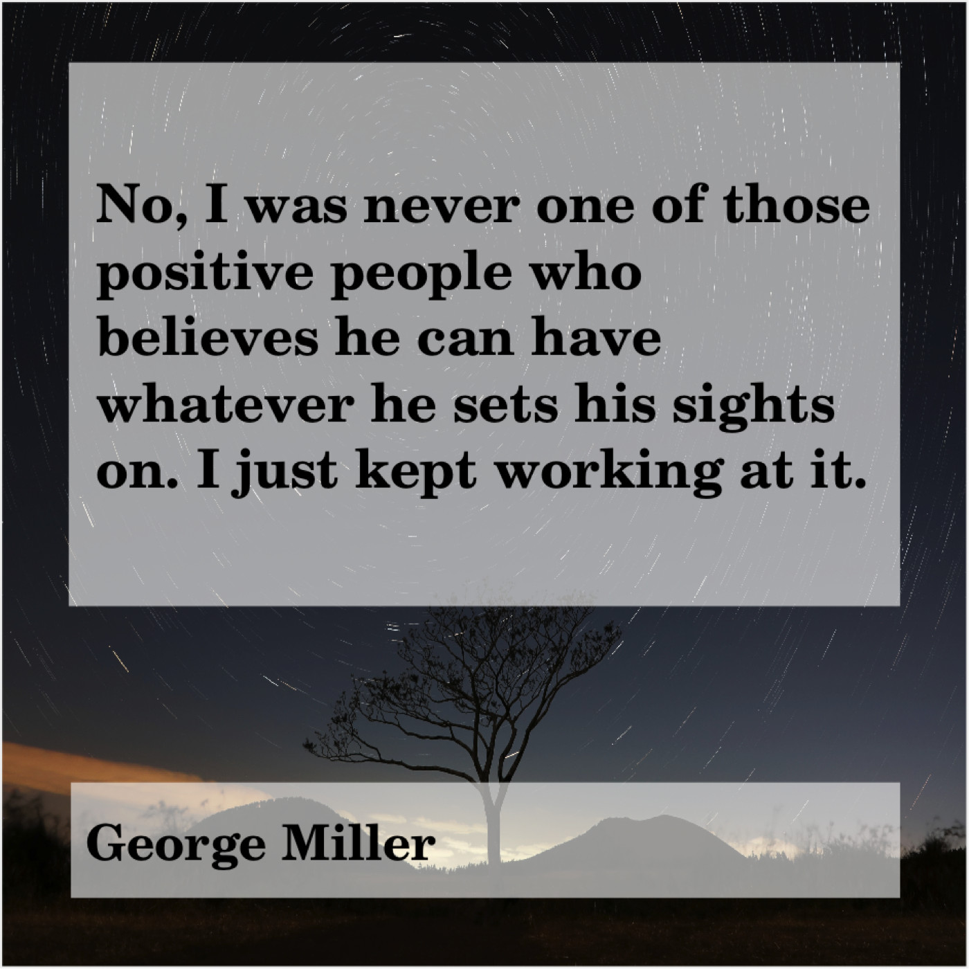 George Miller George Miller – No, I was never one… October 9, 2019 admin “No, I was never one of those positive people who believes he can have whatever he sets his sights on. I just kept working at it.”-George Miller
