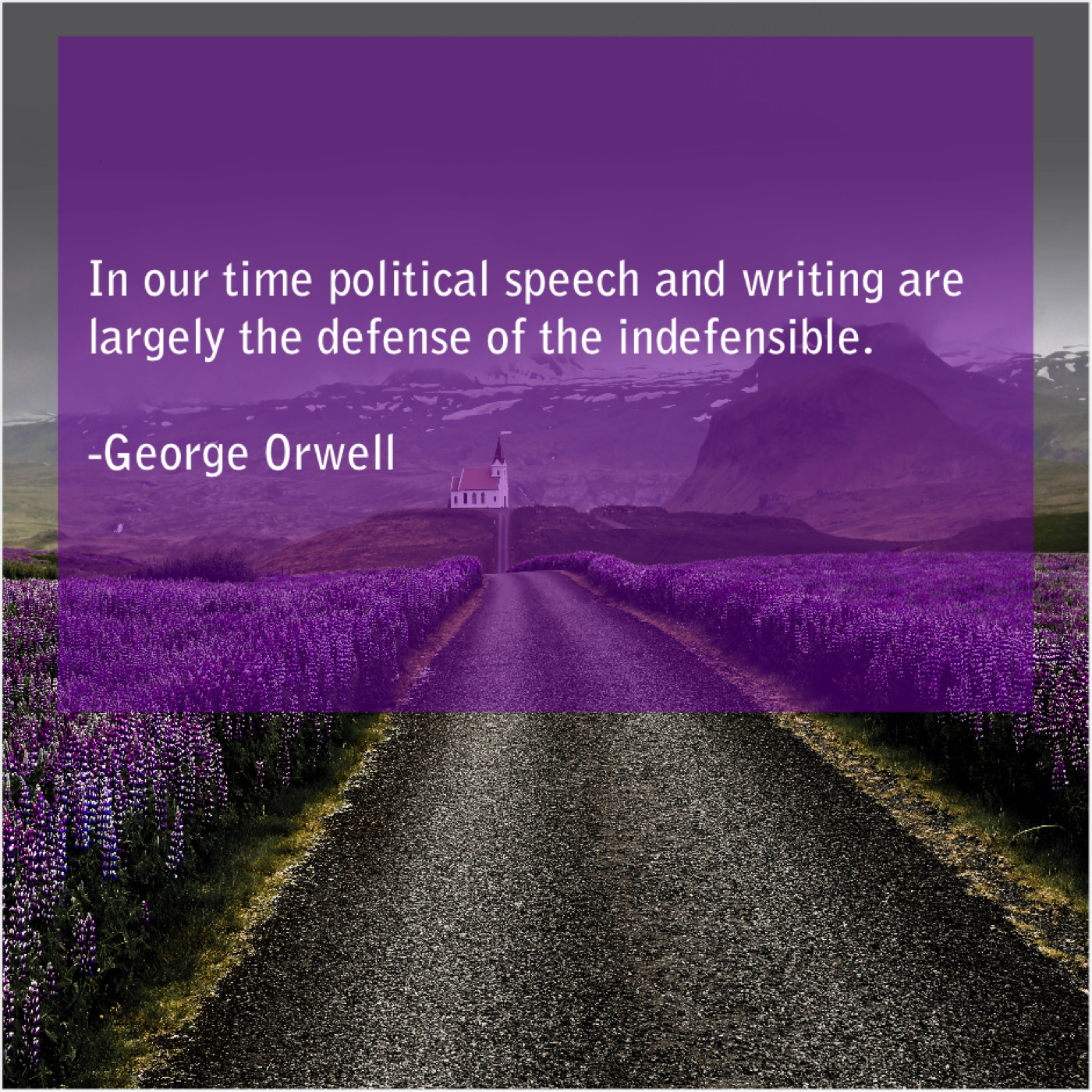 George Orwell George Orwell – In our time political speech… February 16, 2019 admin “In our time political speech and writing are largely the defense of the indefensible.”-George Orwell