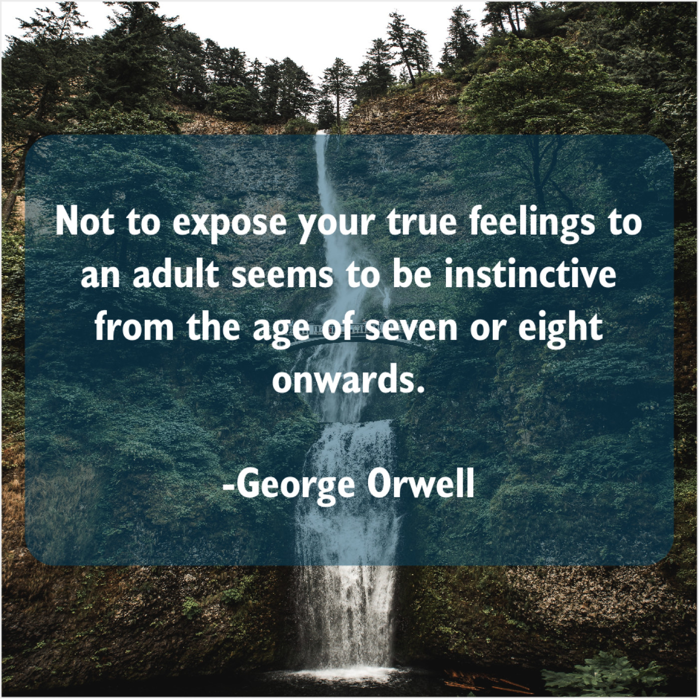 George Orwell George Orwell – Not to expose your true… May 29, 2019 admin “Not to expose your true feelings to an adult seems to be instinctive from the age of seven or eight onwards.”-George Orwell