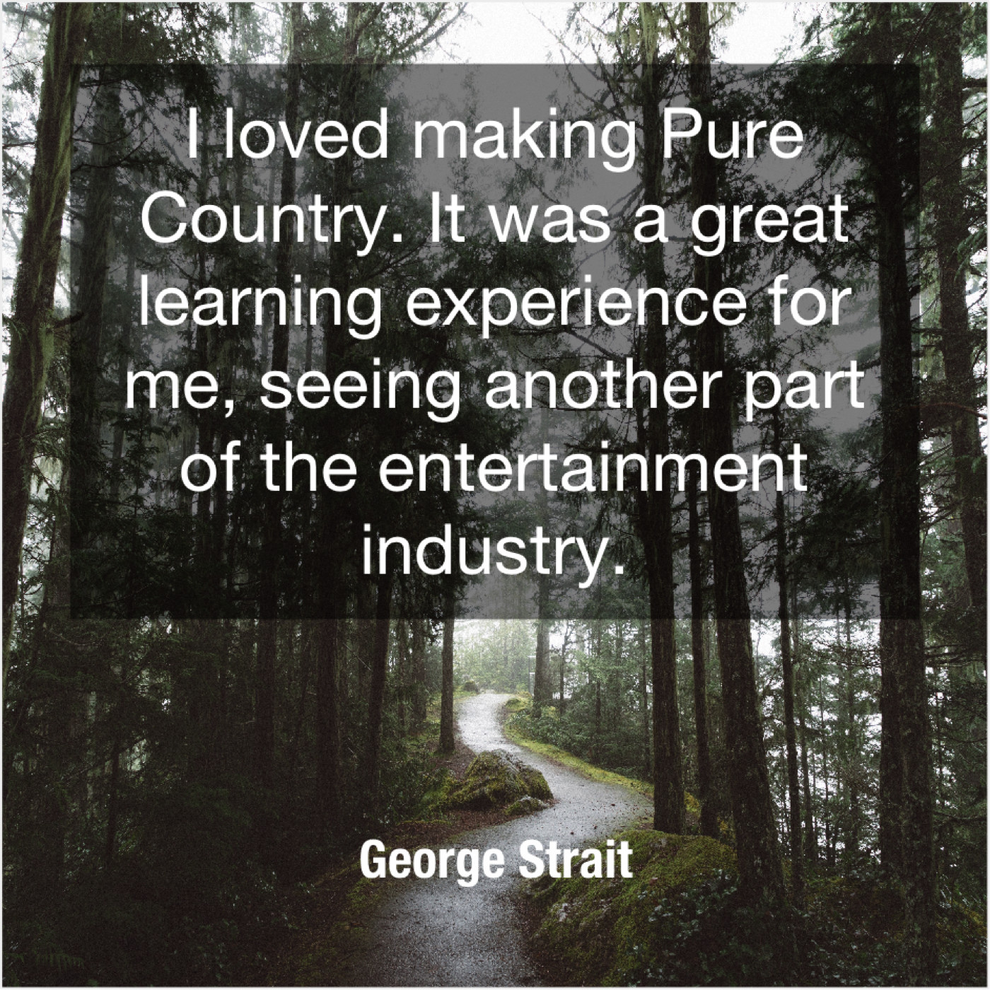 George Strait George Strait – I loved making Pure Country… January 23, 2019 admin “I loved making Pure Country. It was a great learning experience for me, seeing another part of the entertainment industry.”-George Strait