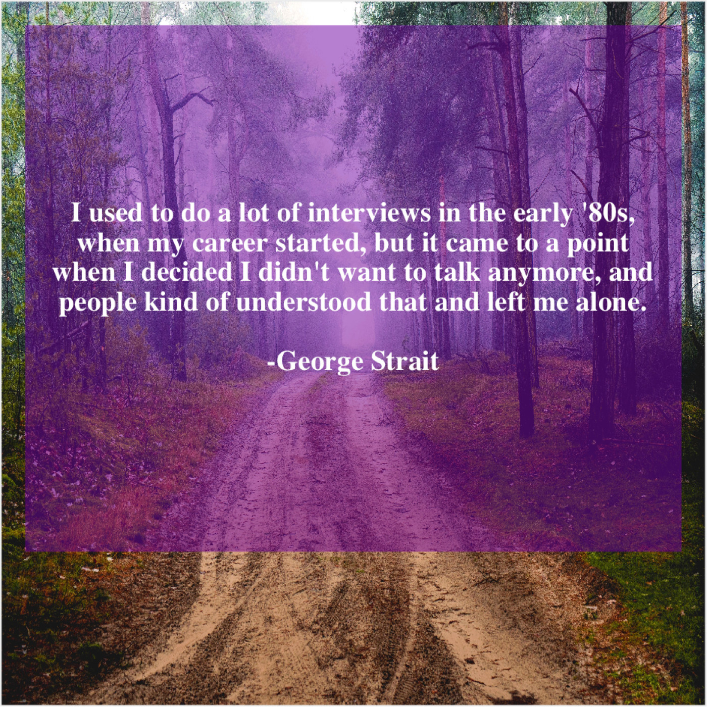 George Strait George Strait – I used to do a… May 21, 2019 admin “I used to do a lot of interviews in the early ’80s, when my career started, but it came to a point when I decided I didn’t want to talk anymore, and people kind of understood that and left me alone.”-George Strait