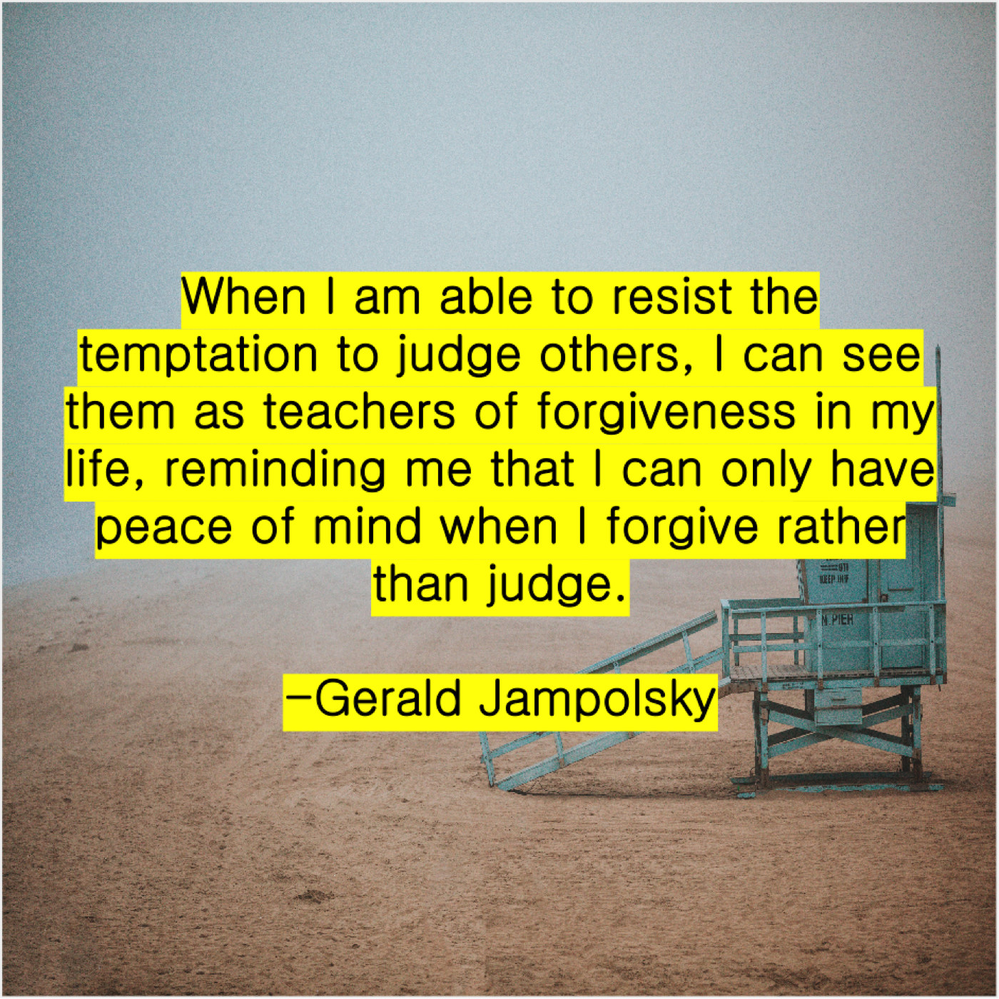 Gerald Jampolsky Gerald Jampolsky – When I am able to… May 16, 2019 admin “When I am able to resist the temptation to judge others, I can see them as teachers of forgiveness in my life, reminding me that I can only have peace of mind when I forgive rather than judge.”-Gerald Jampolsky
