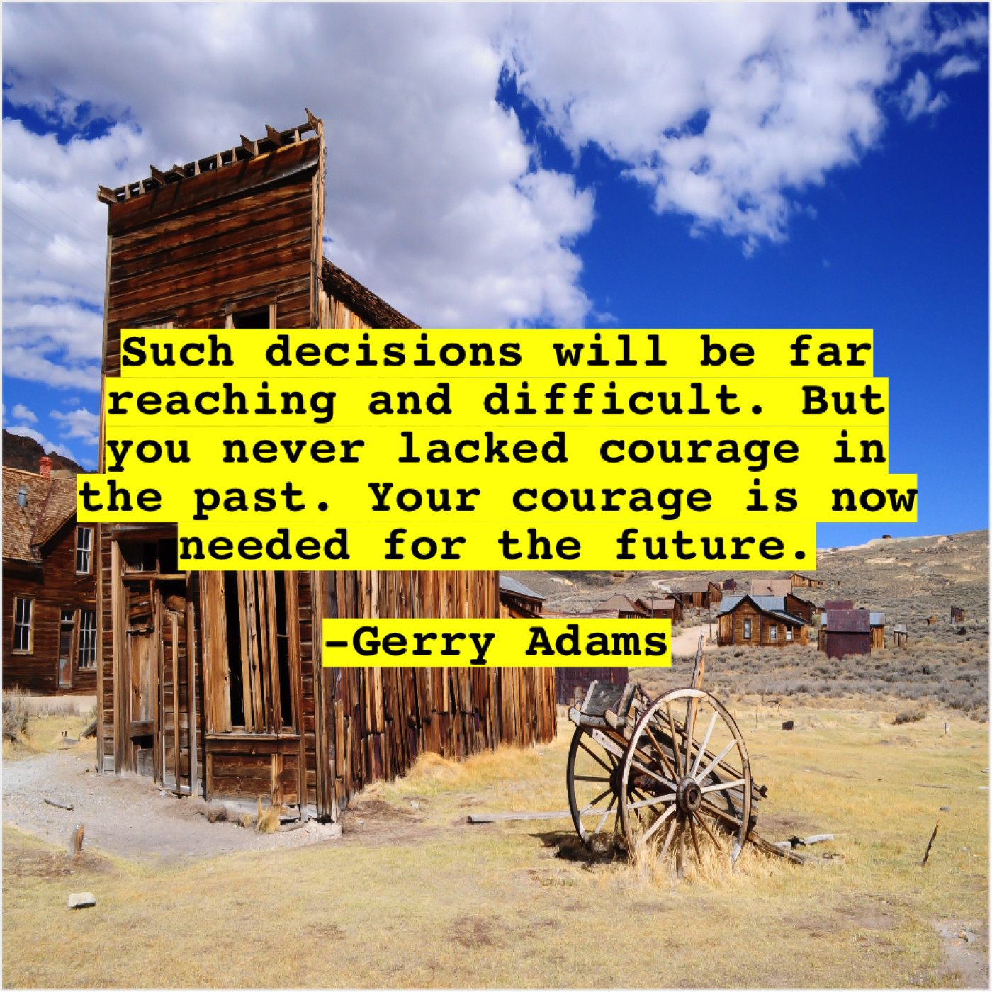 Gerry Adams Gerry Adams – Such decisions will be far… October 22, 2019 admin “Such decisions will be far reaching and difficult. But you never lacked courage in the past. Your courage is now needed for the future.”-Gerry Adams