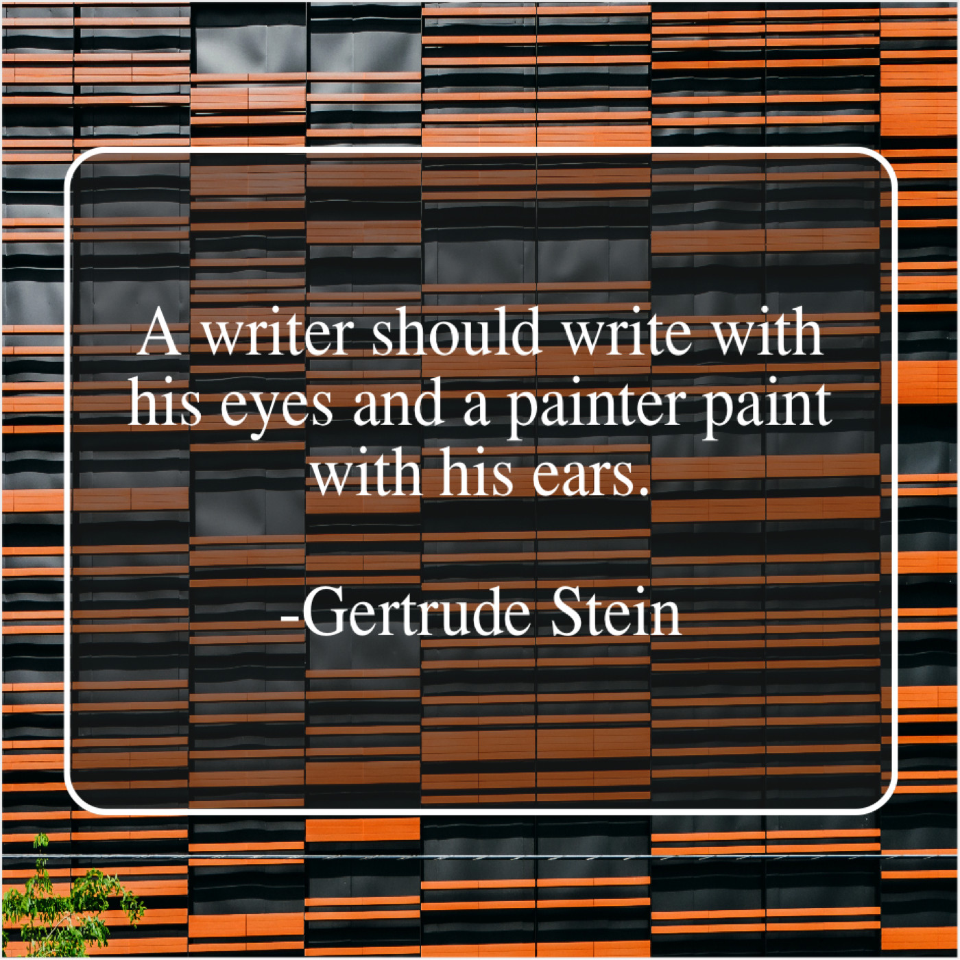 Gertrude Stein Gertrude Stein – A writer should write with… May 12, 2019 admin “A writer should write with his eyes and a painter paint with his ears.”-Gertrude Stein