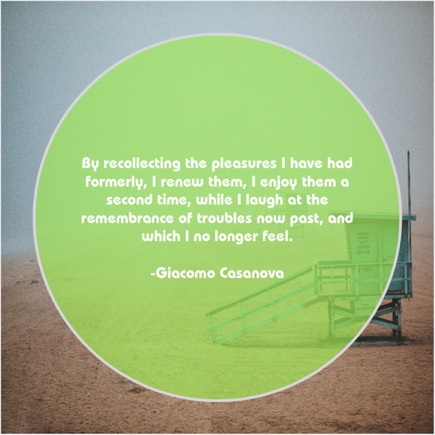 Giacomo Casanova Giacomo Casanova – By recollecting the pleasures I… April 18, 2019 admin “By recollecting the pleasures I have had formerly, I renew them, I enjoy them a second time, while I laugh at the remembrance of troubles now past, and which I no longer feel.”-Giacomo Casanova