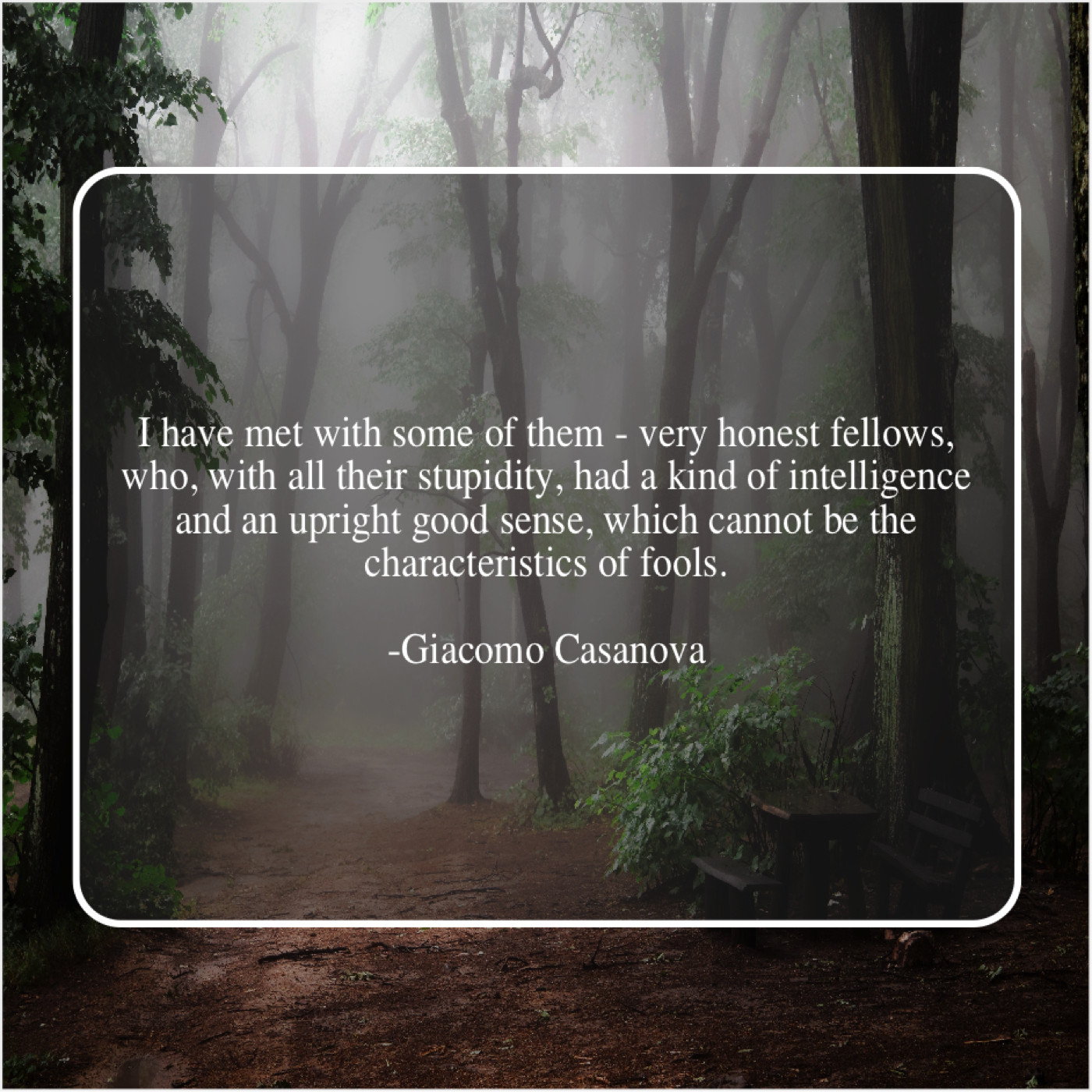 Giacomo Casanova Giacomo Casanova – I have met with some… June 1, 2019 admin “I have met with some of them – very honest fellows, who, with all their stupidity, had a kind of intelligence and an upright good sense, which cannot be the characteristics of fools.”-Giacomo Casanova