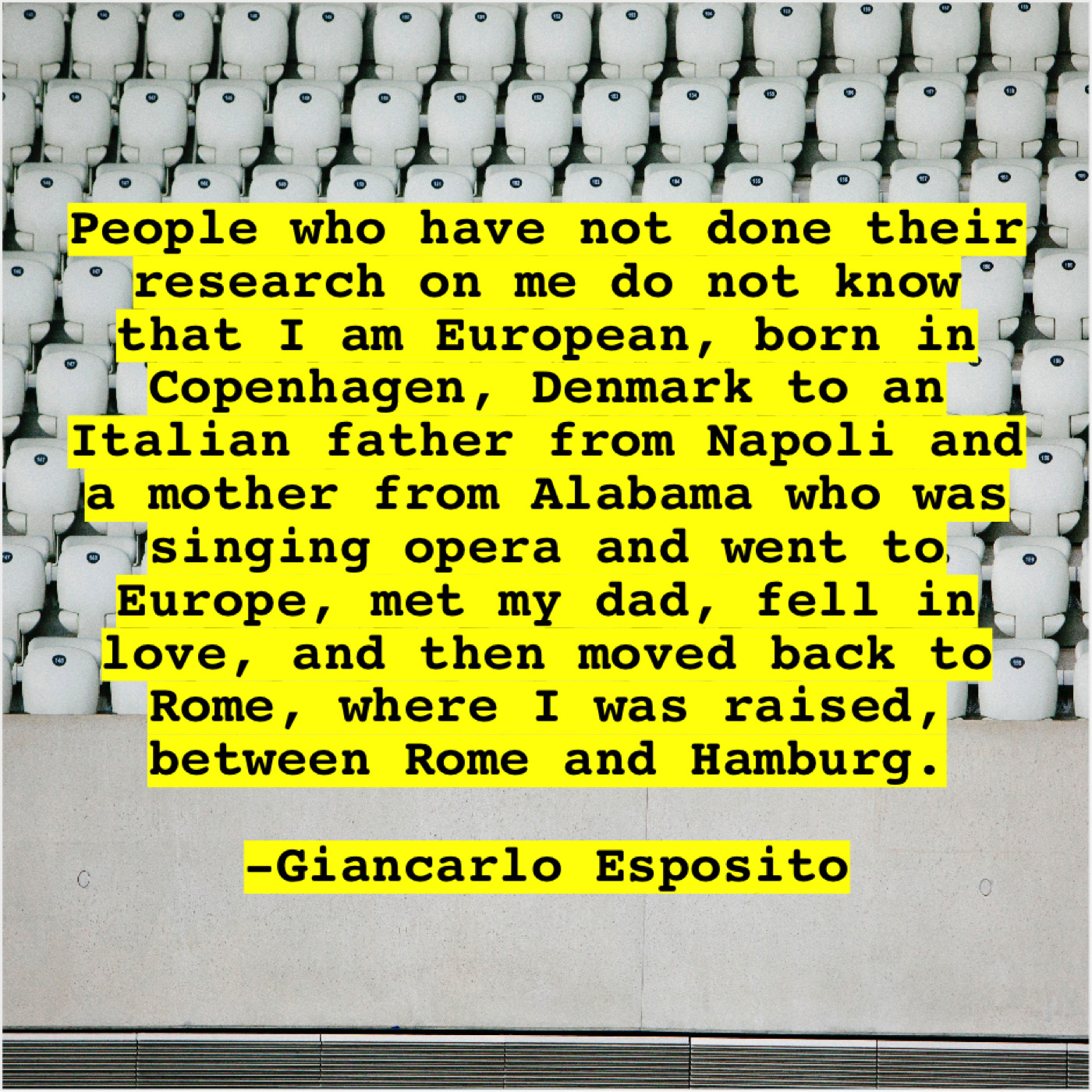 “People who have not done their research on me do not know that I am European, born in Copenhagen, Denmark to an Italian father from Napoli and a mother from Alabama who was singing opera and went to Europe, met my dad, fell in love, and then moved back to Rome, where I was raised, between Rome and Hamburg.”