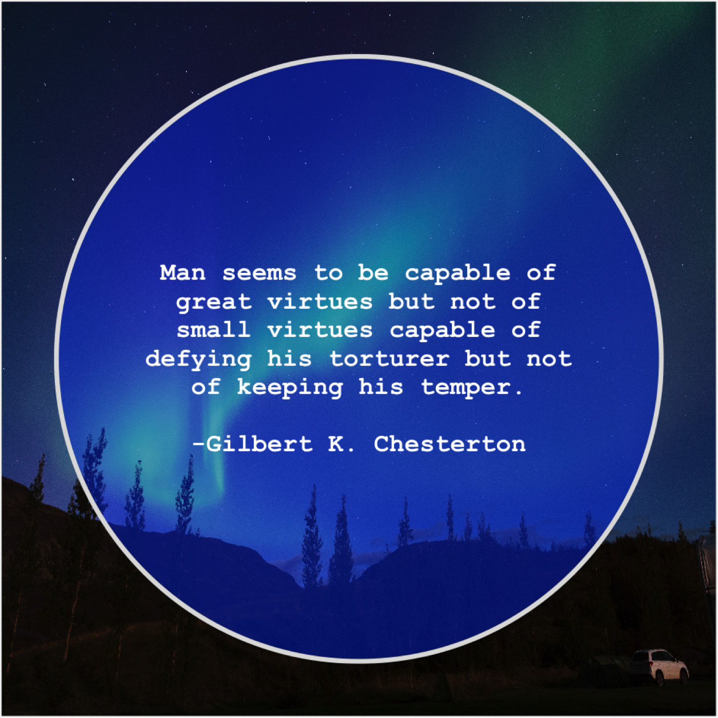 Gilbert K. Chesterton Gilbert K. Chesterton – Man seems to be capable… August 8, 2019 admin “Man seems to be capable of great virtues but not of small virtues capable of defying his torturer but not of keeping his temper.”-Gilbert K. Chesterton