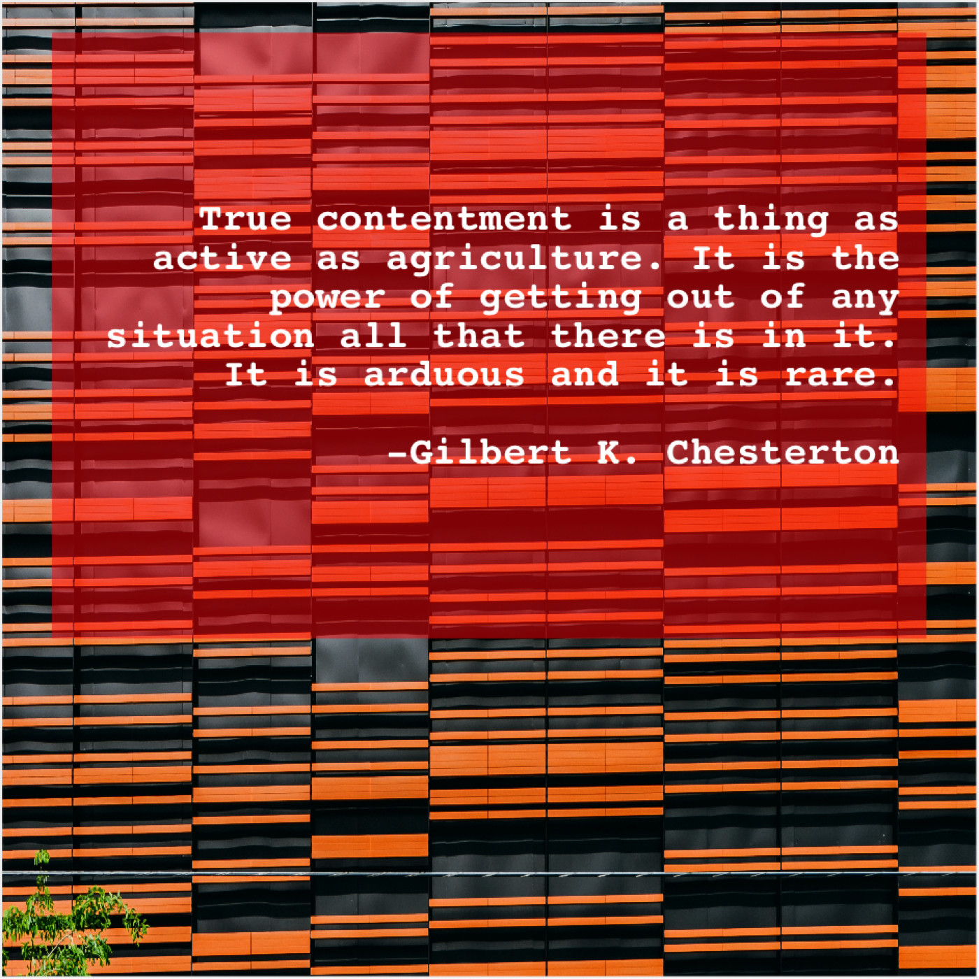 Gilbert K. Chesterton Gilbert K. Chesterton – True contentment is a thing… September 5, 2019 admin “True contentment is a thing as active as agriculture. It is the power of getting out of any situation all that there is in it. It is arduous and it is rare.”-Gilbert K. Chesterton