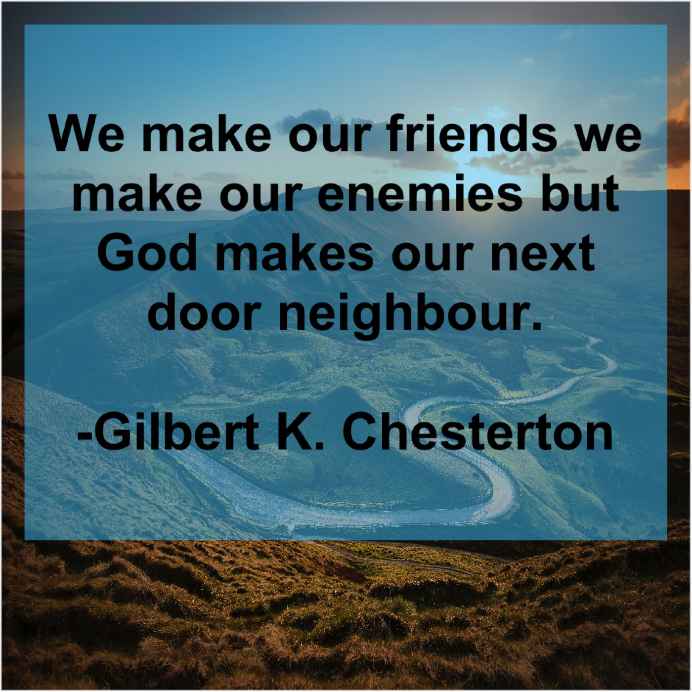 Gilbert K. Chesterton Gilbert K. Chesterton – We make our friends we… August 14, 2019 admin “We make our friends we make our enemies but God makes our next door neighbour.”-Gilbert K. Chesterton