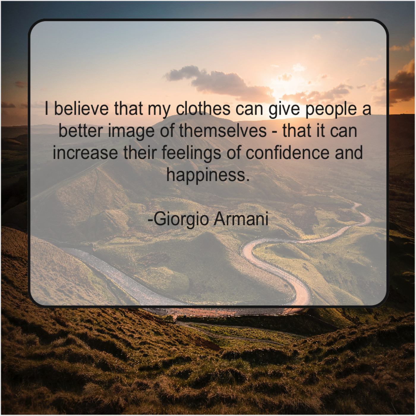 Giorgio Armani Giorgio Armani – I believe that my clothes… April 10, 2019 admin “I believe that my clothes can give people a better image of themselves – that it can increase their feelings of confidence and happiness.”-Giorgio Armani