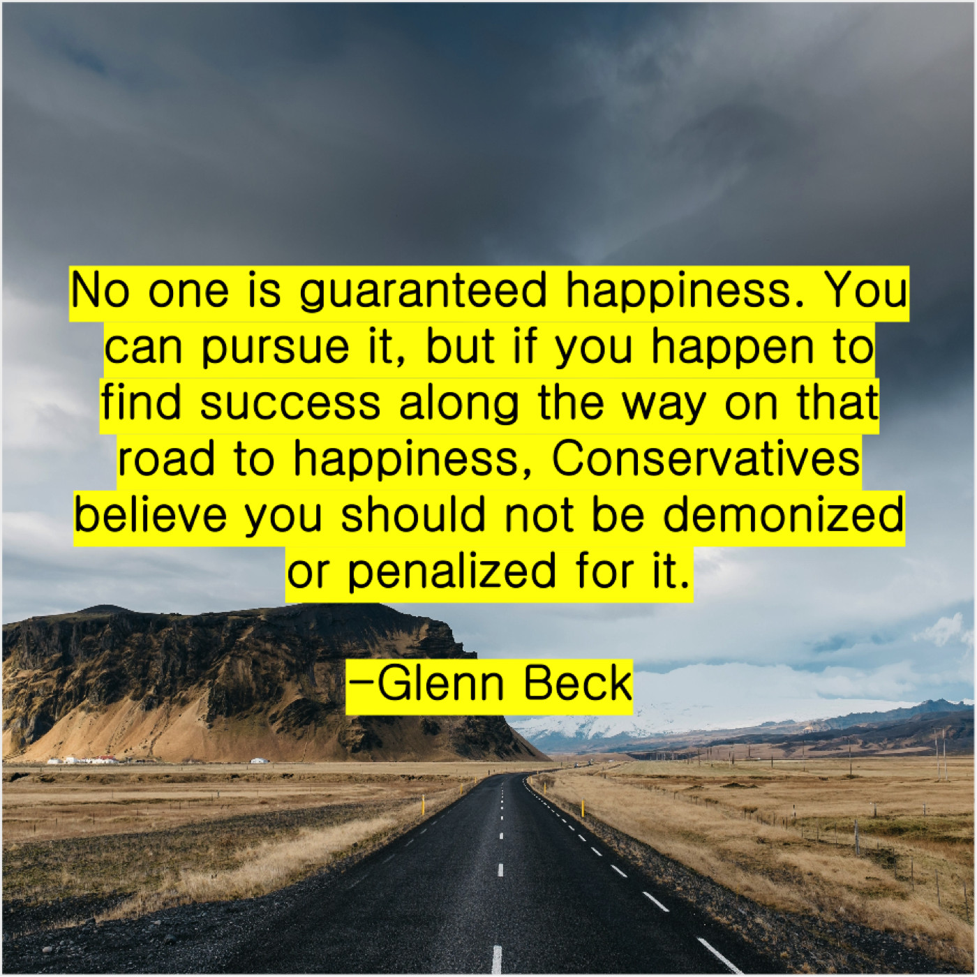 Glenn Beck Glenn Beck – No one is guaranteed happiness… August 12, 2019 admin “No one is guaranteed happiness. You can pursue it, but if you happen to find success along the way on that road to happiness, Conservatives believe you should not be demonized or penalized for it.”-Glenn Beck