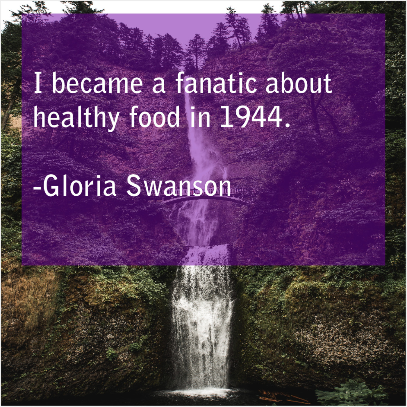 Gloria Swanson Gloria Swanson – I became a fanatic about… June 2, 2019 admin “I became a fanatic about healthy food in 1944.”-Gloria Swanson