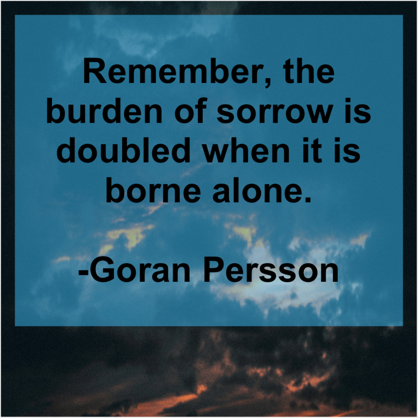 Goran Persson Goran Persson – Remember, the burden of sorrow… May 25, 2019 admin “Remember, the burden of sorrow is doubled when it is borne alone.”-Goran Persson