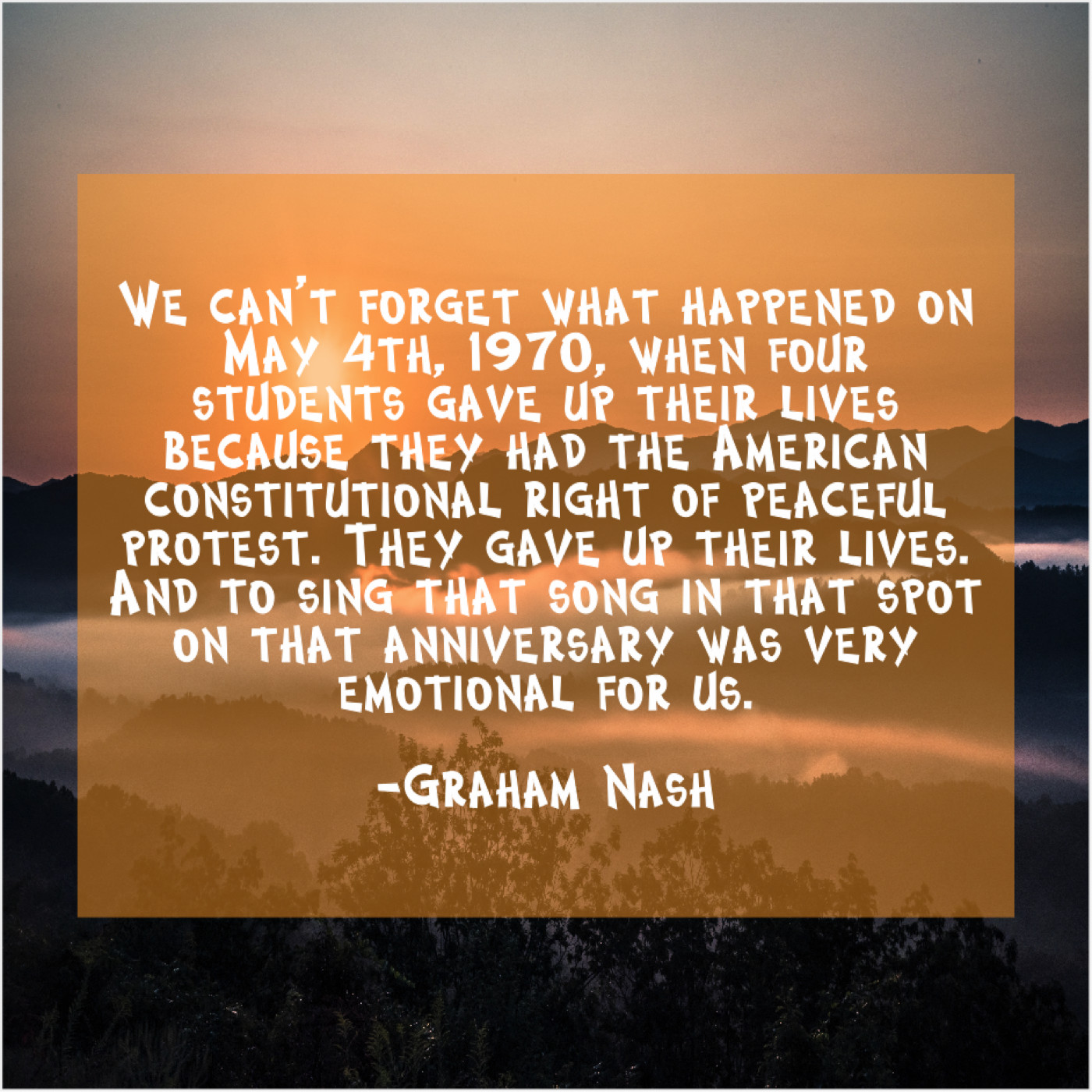 “We can’t forget what happened on May 4th, 1970, when four students gave up their lives because they had the American constitutional right of peaceful protest. They gave up their lives. And to sing that song in that spot on that anniversary was very emotional for us.”