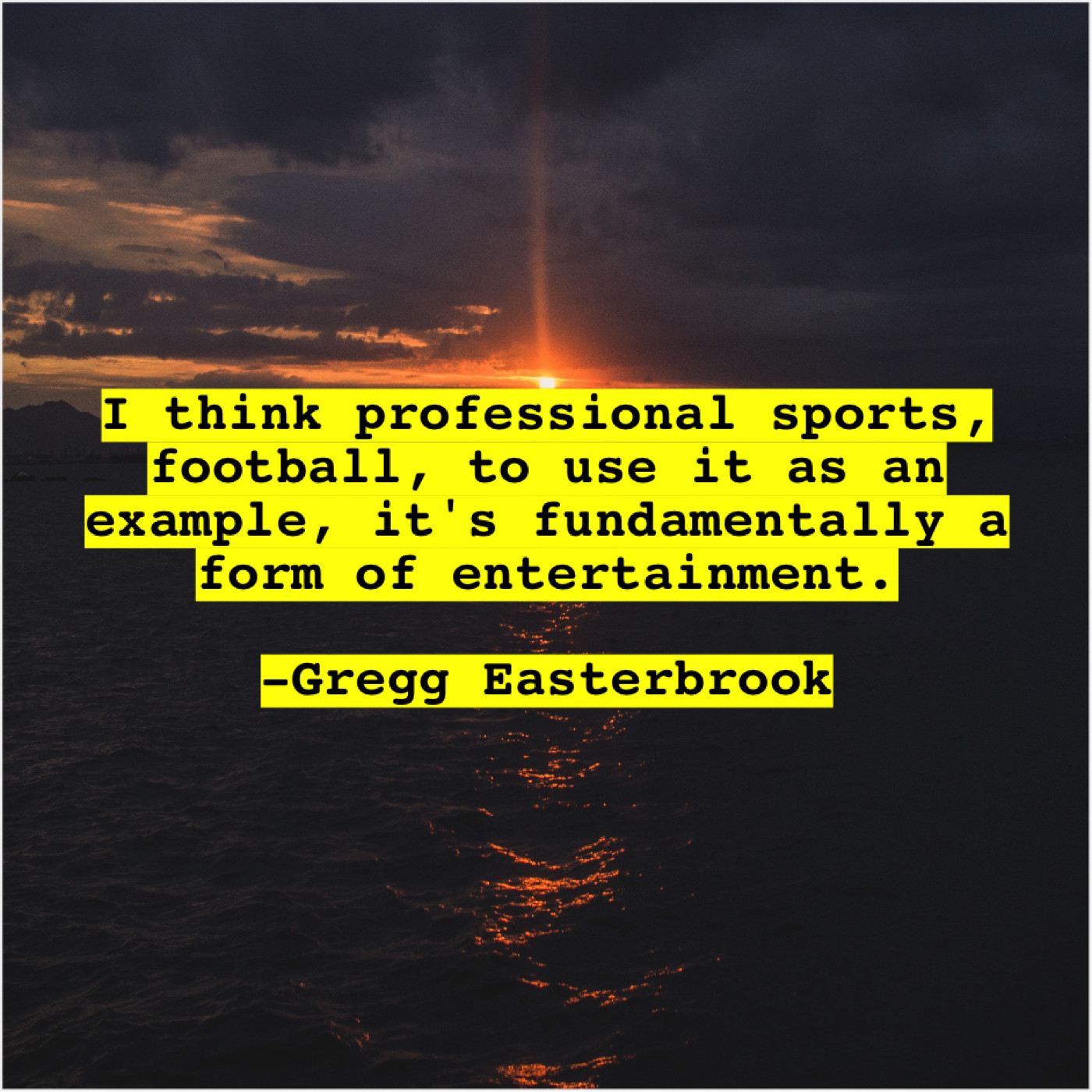 Gregg Easterbrook Gregg Easterbrook – I think professional sports, football… July 4, 2019 admin “I think professional sports, football, to use it as an example, it’s fundamentally a form of entertainment.”-Gregg Easterbrook