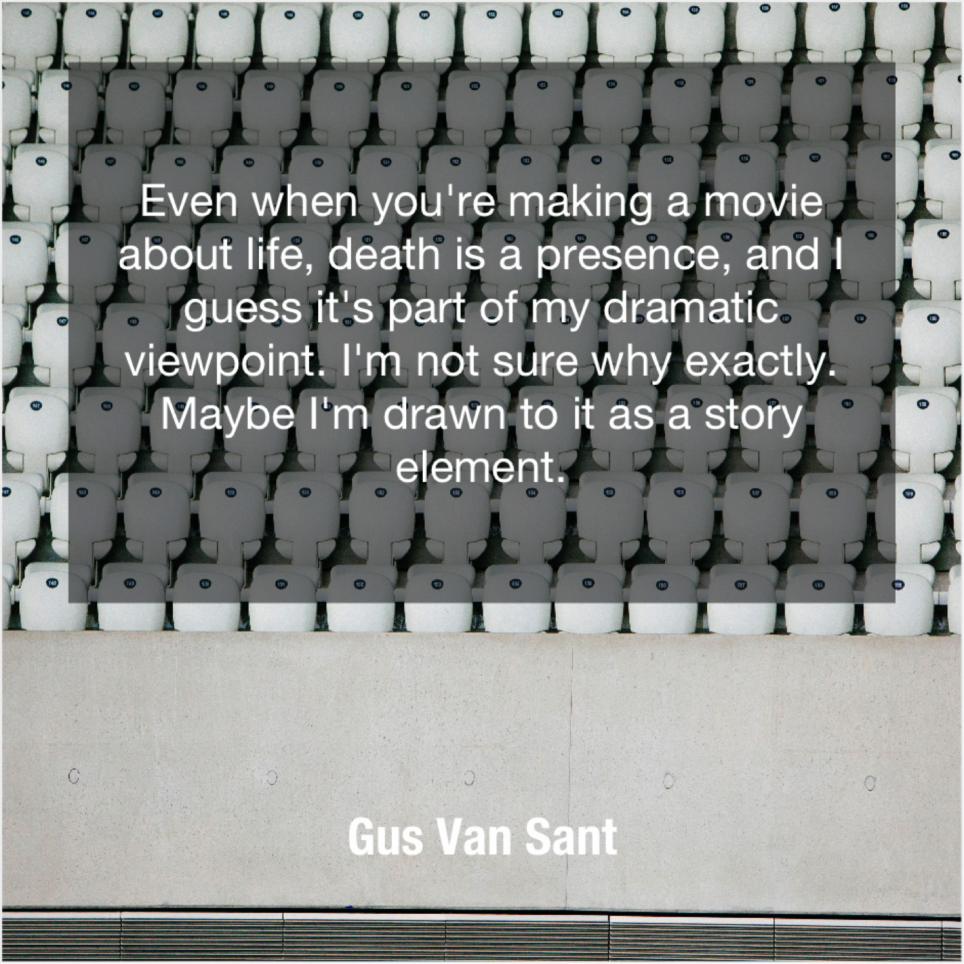 Gus Van Sant Gus Van Sant – Even when you’re making a… December 7, 2018 admin “Even when you’re making a movie about life, death is a presence, and I guess it’s part of my dramatic viewpoint. I’m not sure why exactly. Maybe I’m drawn to it as a story element.”-Gus Van Sant