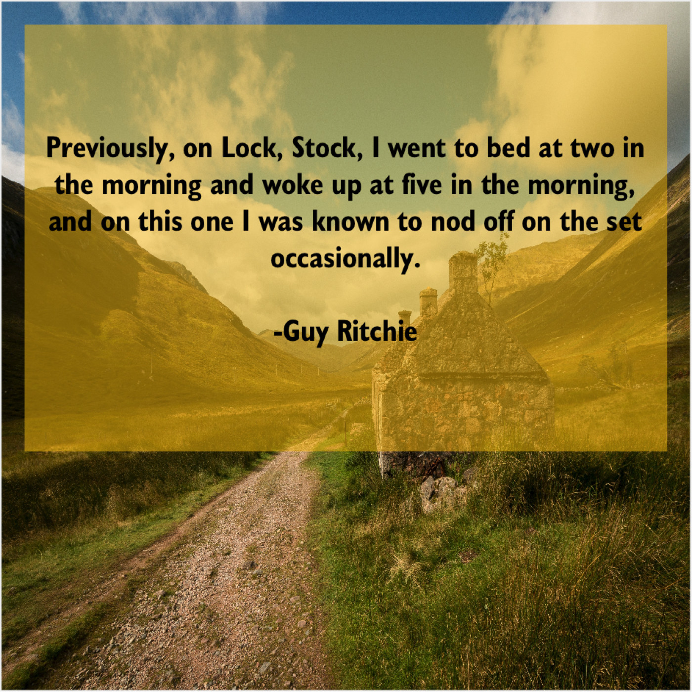 Guy Ritchie Guy Ritchie – Previously, on Lock, Stock, I… April 12, 2019 admin “Previously, on Lock, Stock, I went to bed at two in the morning and woke up at five in the morning, and on this one I was known to nod off on the set occasionally.”-Guy Ritchie
