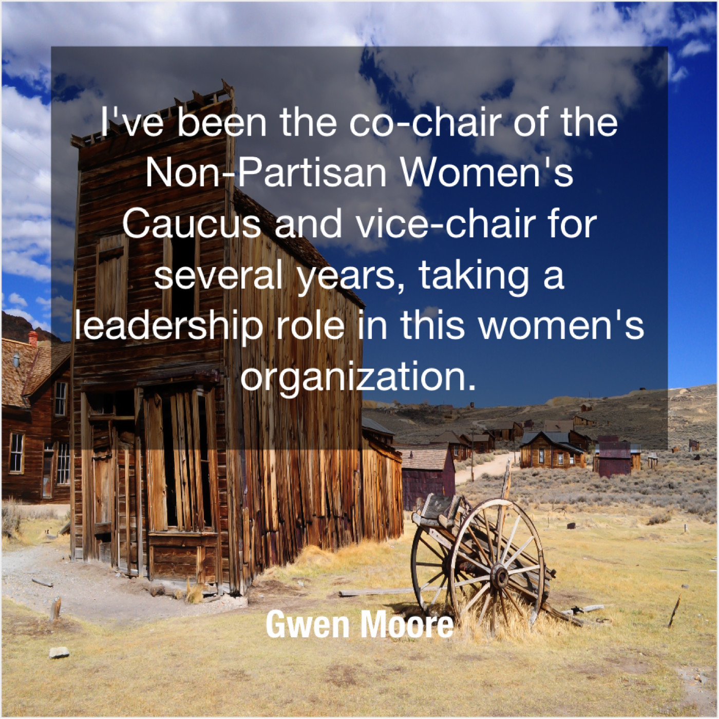 Gwen Moore Gwen Moore – I’ve been the co-chair… November 24, 2018 admin “I’ve been the co-chair of the Non-Partisan Women’s Caucus and vice-chair for several years, taking a leadership role in this women’s organization.”-Gwen Moore