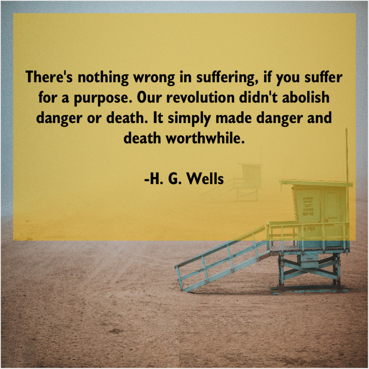 H. G. Wells H. G. Wells – There’s nothing wrong in suffering… February 2, 2019 admin “There’s nothing wrong in suffering, if you suffer for a purpose. Our revolution didn’t abolish danger or death. It simply made danger and death worthwhile.”-H. G. Wells