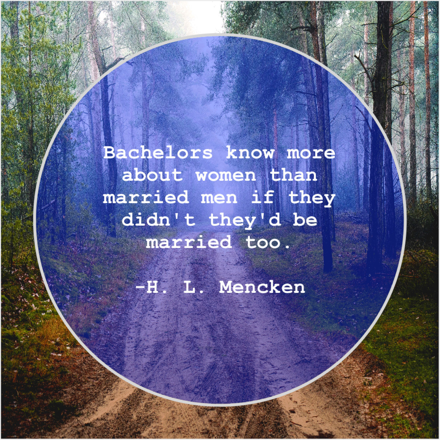 H. L. Mencken H. L. Mencken – Bachelors know more about women… October 29, 2018 admin “Bachelors know more about women than married men if they didn’t they’d be married too.”-H. L. Mencken