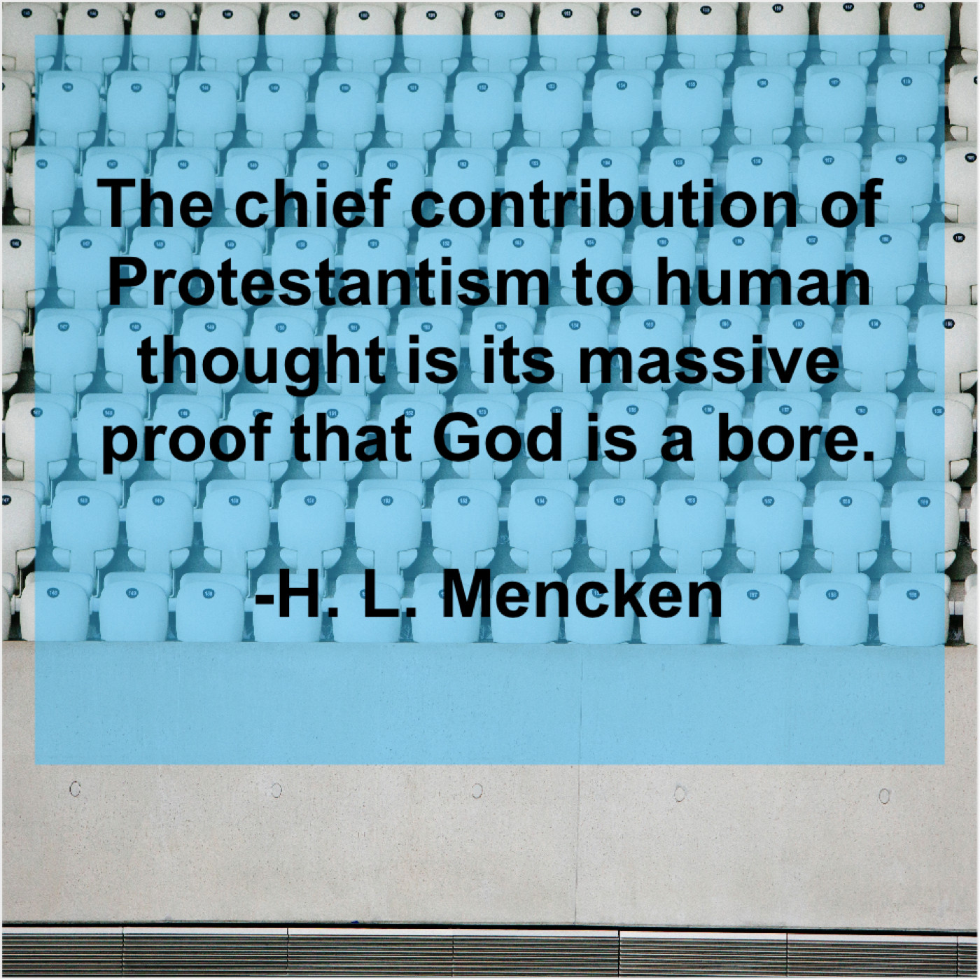 H. L. Mencken H. L. Mencken – The chief contribution of Protestantism… September 10, 2019 admin “The chief contribution of Protestantism to human thought is its massive proof that God is a bore.”-H. L. Mencken