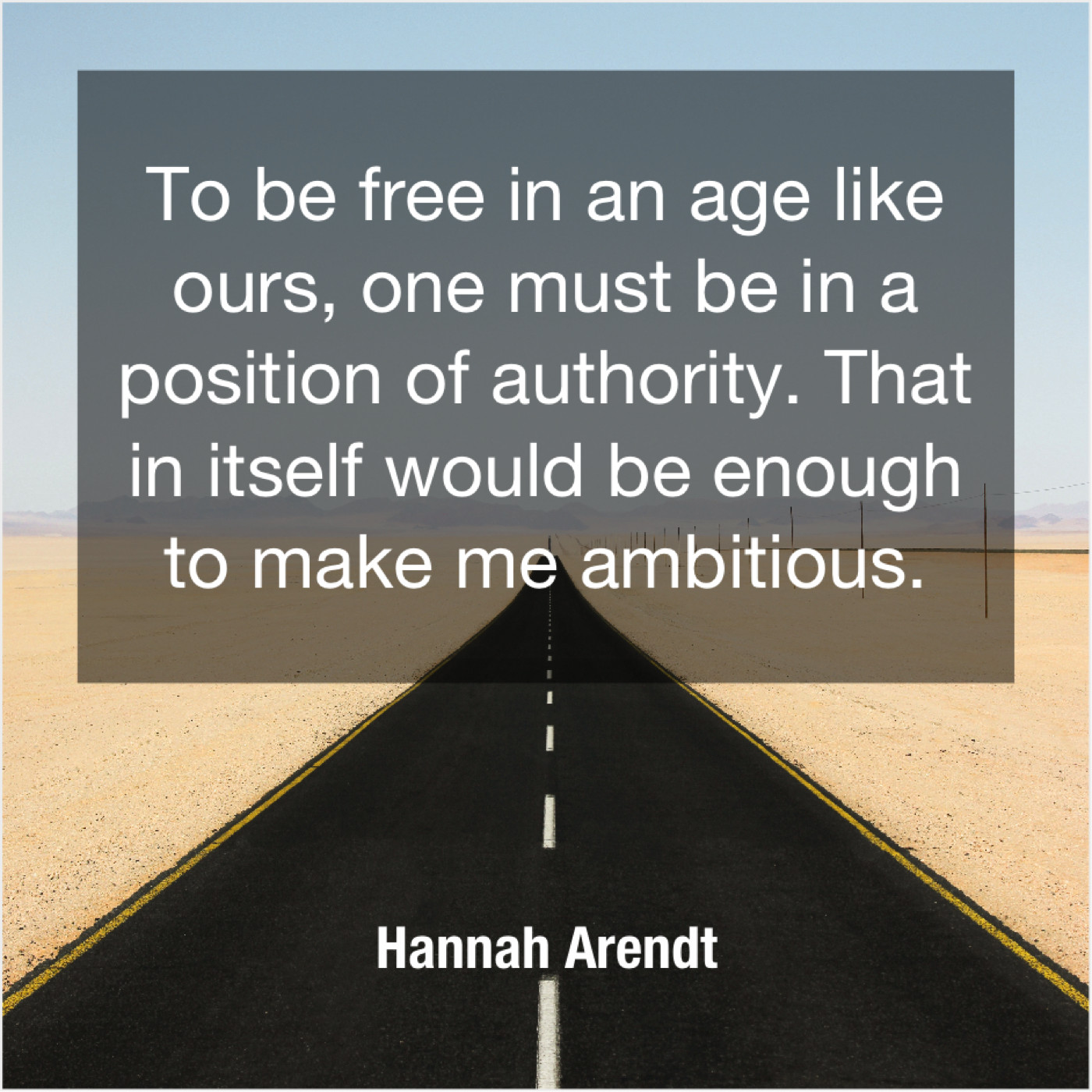Hannah Arendt Hannah Arendt – To be free in an… March 3, 2019 admin “To be free in an age like ours, one must be in a position of authority. That in itself would be enough to make me ambitious.”-Hannah Arendt