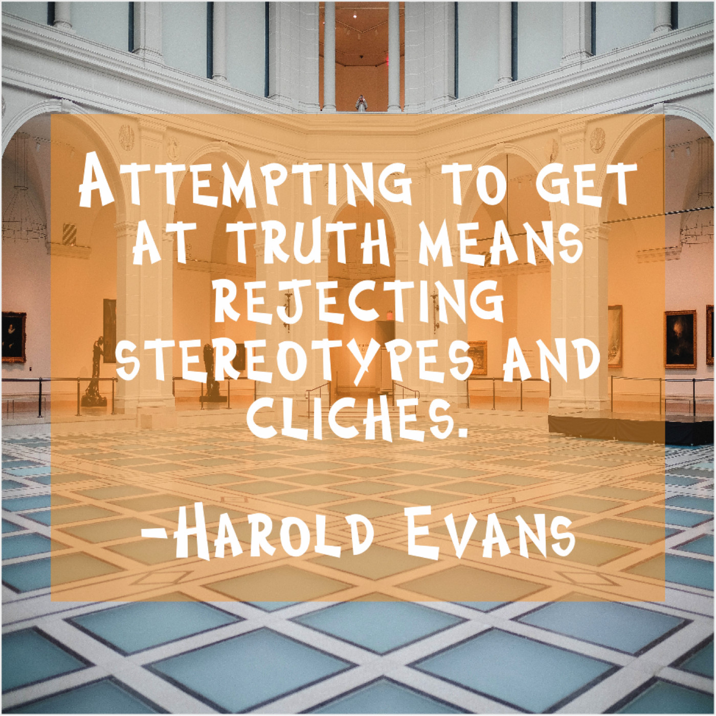 Harold Evans Harold Evans – Attempting to get at truth… January 2, 2019 admin “Attempting to get at truth means rejecting stereotypes and cliches.”-Harold Evans