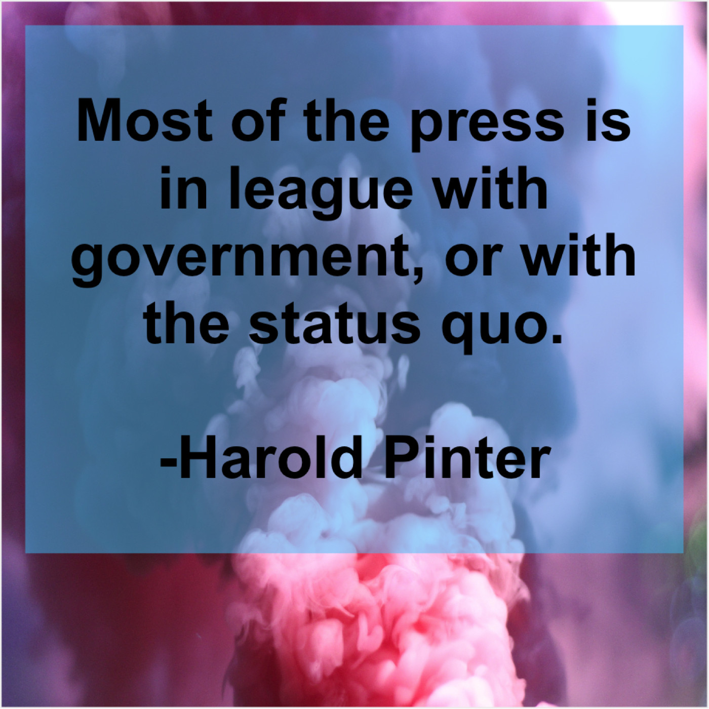 Harold Pinter Harold Pinter – Most of the press is… February 13, 2019 admin “Most of the press is in league with government, or with the status quo.”-Harold Pinter