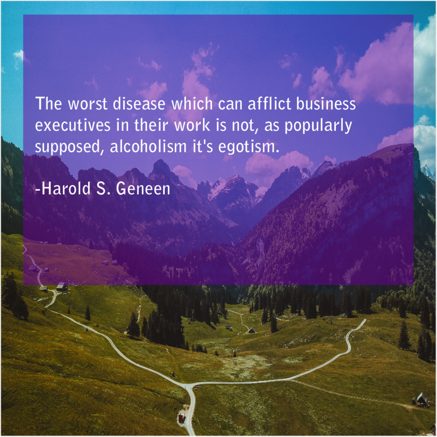 Harold S. Geneen Harold S. Geneen – The worst disease which can… November 12, 2018 admin “The worst disease which can afflict business executives in their work is not, as popularly supposed, alcoholism it’s egotism.”-Harold S. Geneen
