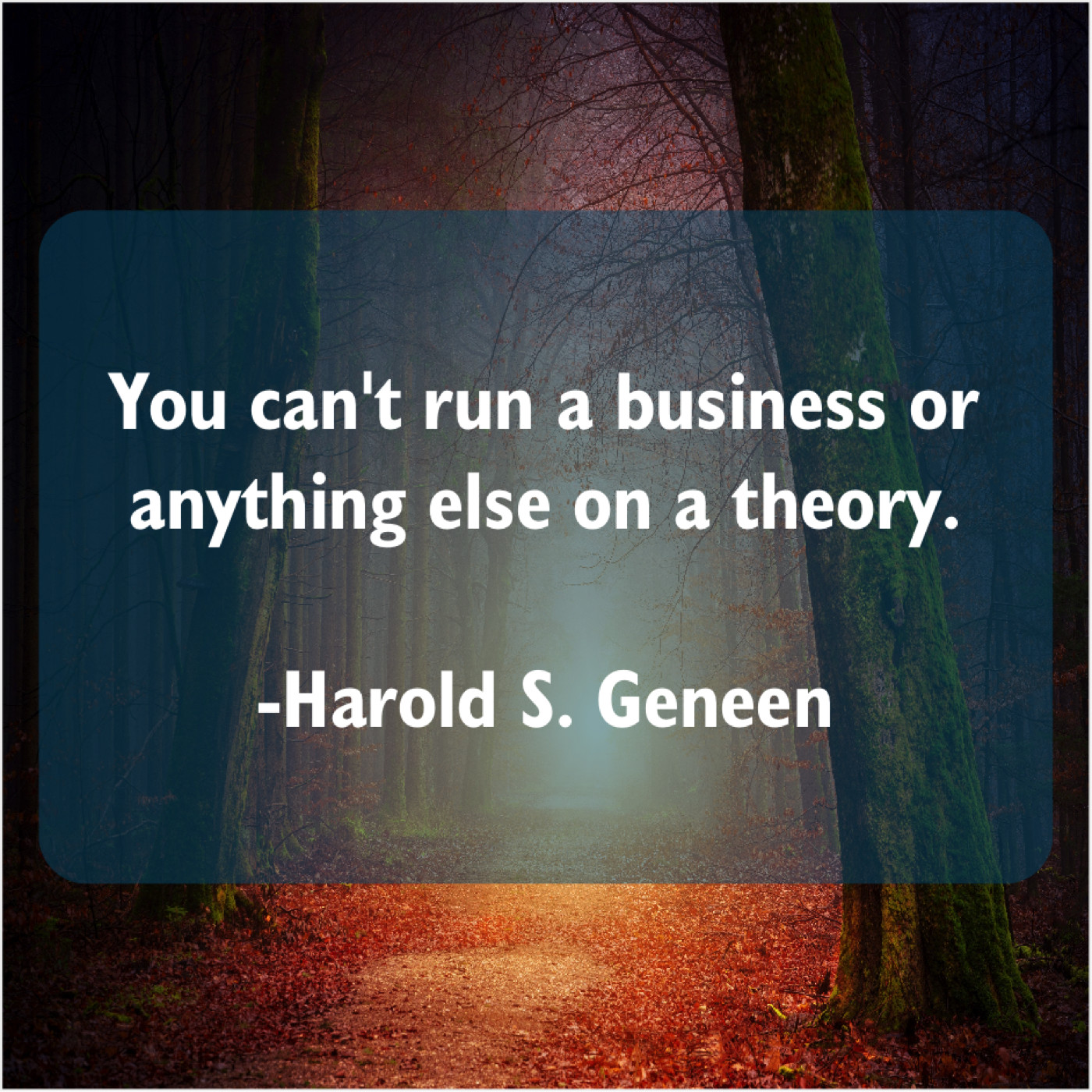 Harold S. Geneen Harold S. Geneen – You can’t run a business… September 20, 2019 admin “You can’t run a business or anything else on a theory.”-Harold S. Geneen