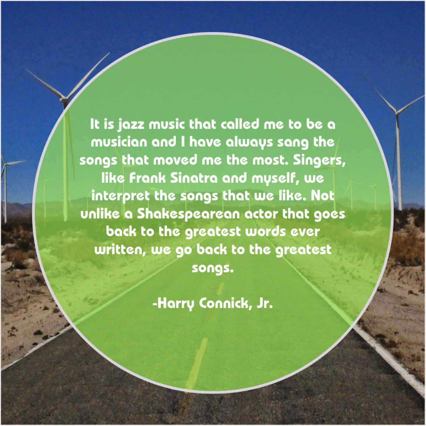 “It is jazz music that called me to be a musician and I have always sang the songs that moved me the most. Singers, like Frank Sinatra and myself, we interpret the songs that we like. Not unlike a Shakespearean actor that goes back to the greatest words ever written, we go back to the greatest songs.”