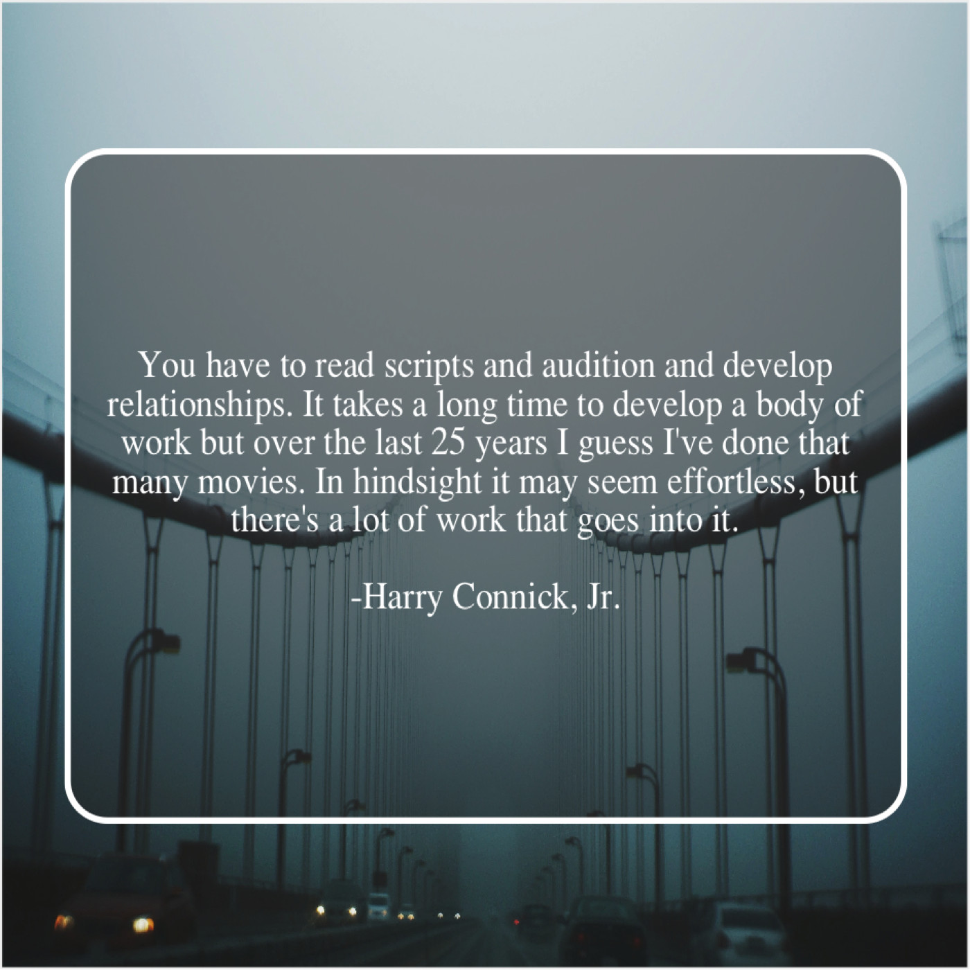 “You have to read scripts and audition and develop relationships. It takes a long time to develop a body of work but over the last 25 years I guess I’ve done that many movies. In hindsight it may seem effortless, but there’s a lot of work that goes into it.”