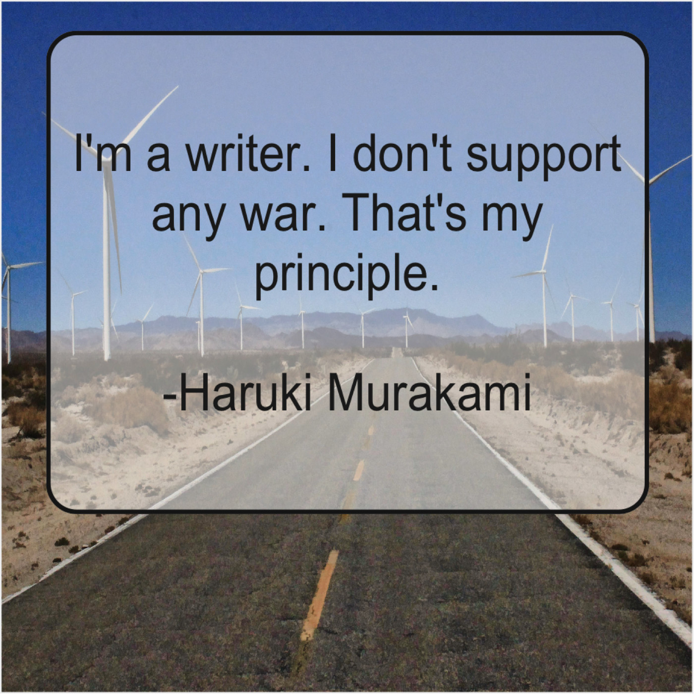 Haruki Murakami Haruki Murakami – I’m a writer. I don’t… September 19, 2019 admin “I’m a writer. I don’t support any war. That’s my principle.”-Haruki Murakami