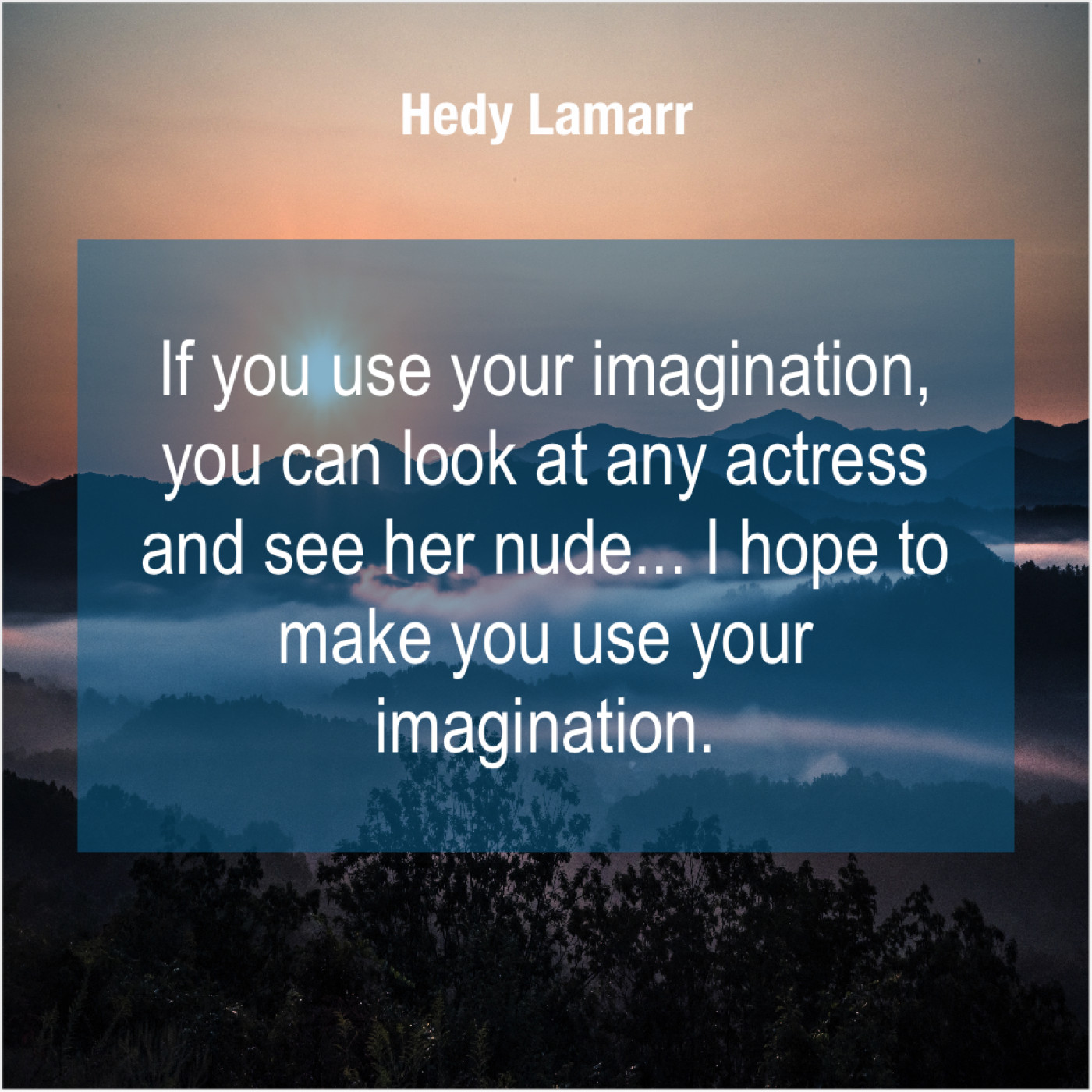 Hedy Lamarr Hedy Lamarr – If you use your imagination… January 26, 2019 admin “If you use your imagination, you can look at any actress and see her nude… I hope to make you use your imagination.”-Hedy Lamarr
