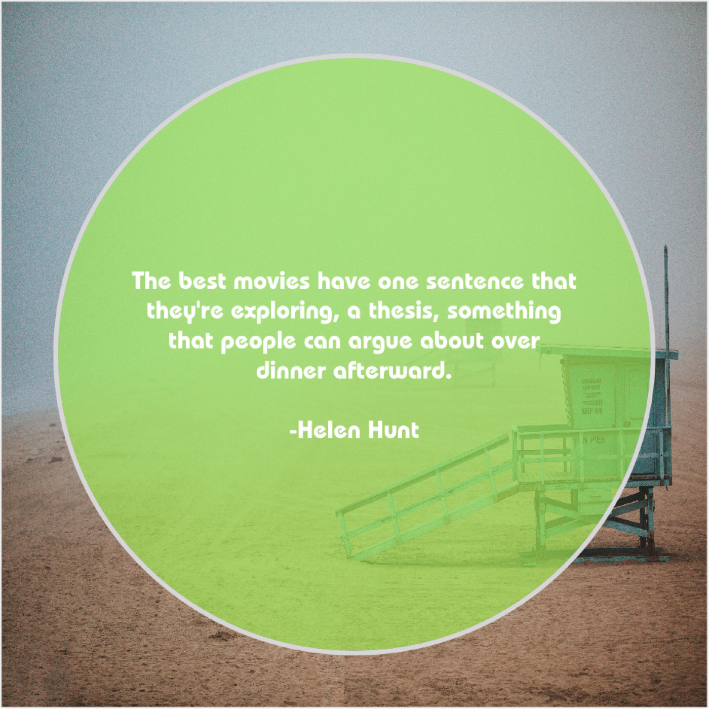Helen Hunt Helen Hunt – The best movies have one… April 23, 2019 admin “The best movies have one sentence that they’re exploring, a thesis, something that people can argue about over dinner afterward.”-Helen Hunt