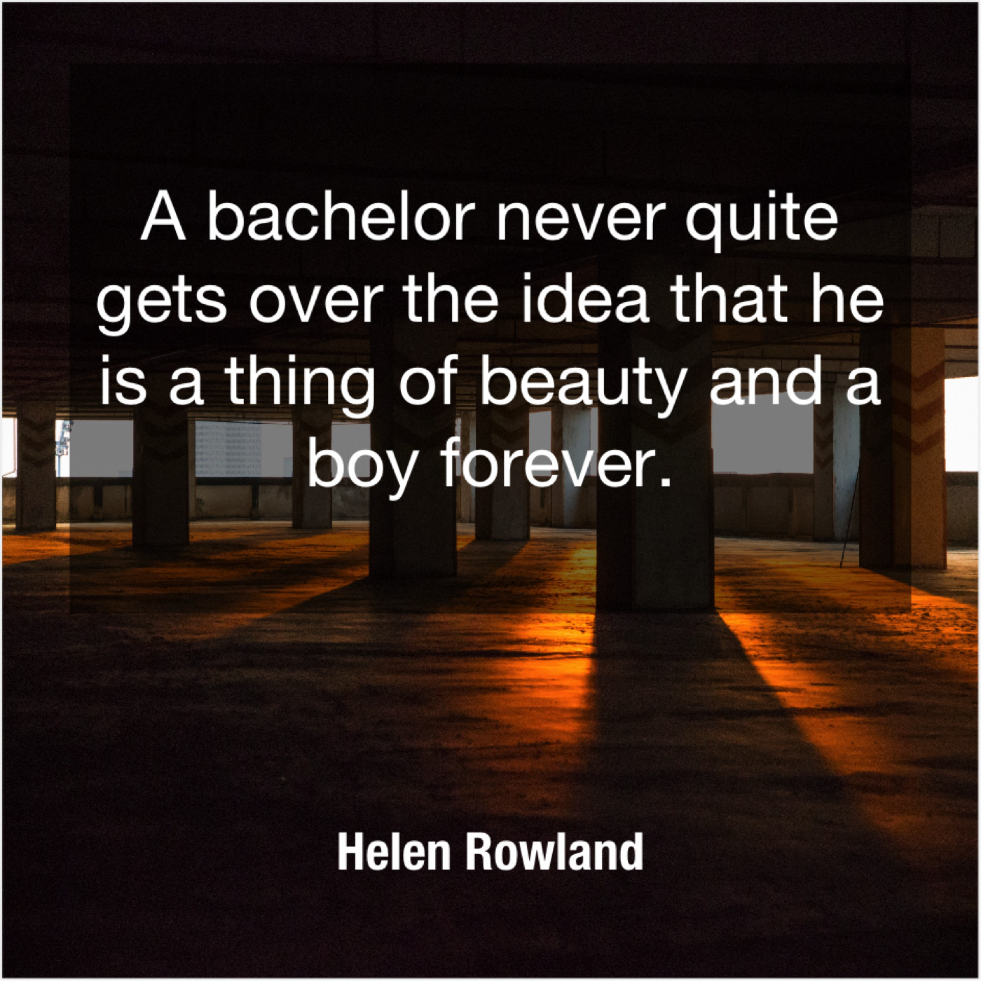 Helen Rowland Helen Rowland – A bachelor never quite gets… September 24, 2019 admin “A bachelor never quite gets over the idea that he is a thing of beauty and a boy forever.”-Helen Rowland