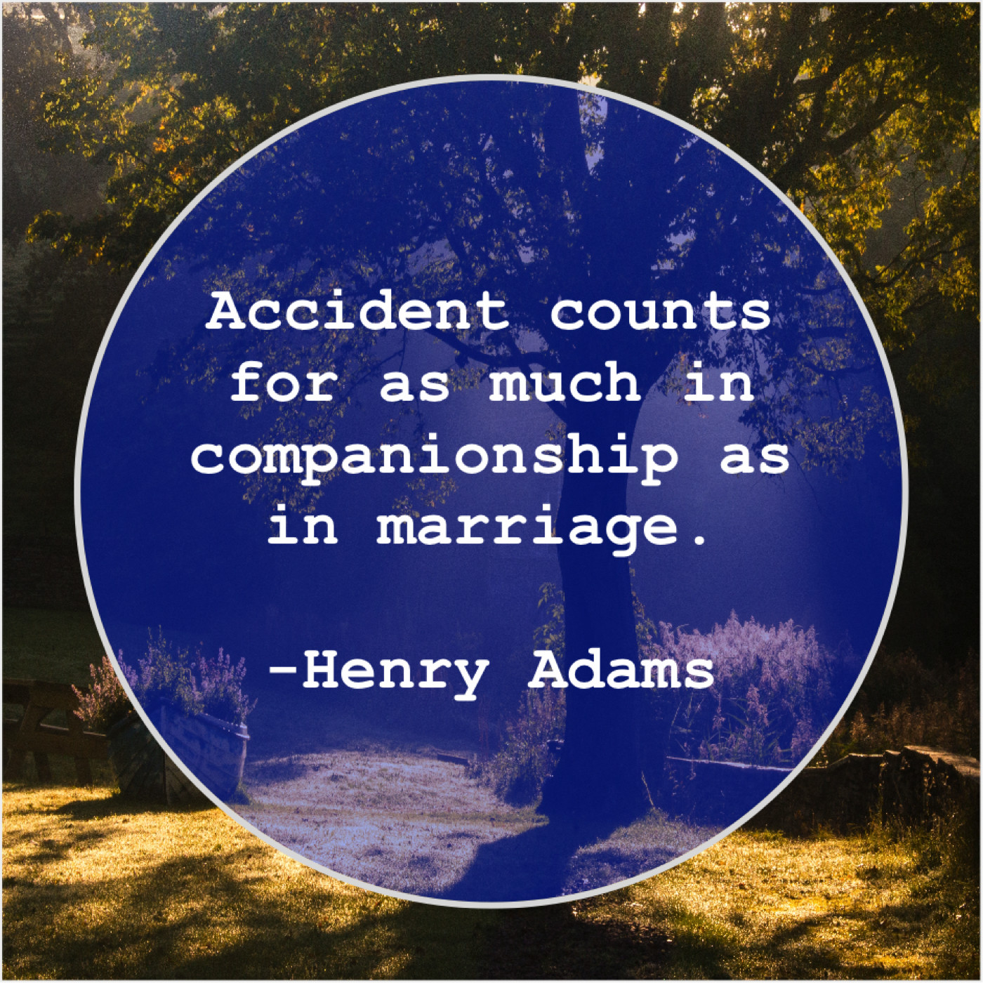 Henry Adams Henry Adams – Accident counts for as much… October 17, 2019 admin “Accident counts for as much in companionship as in marriage.”-Henry Adams