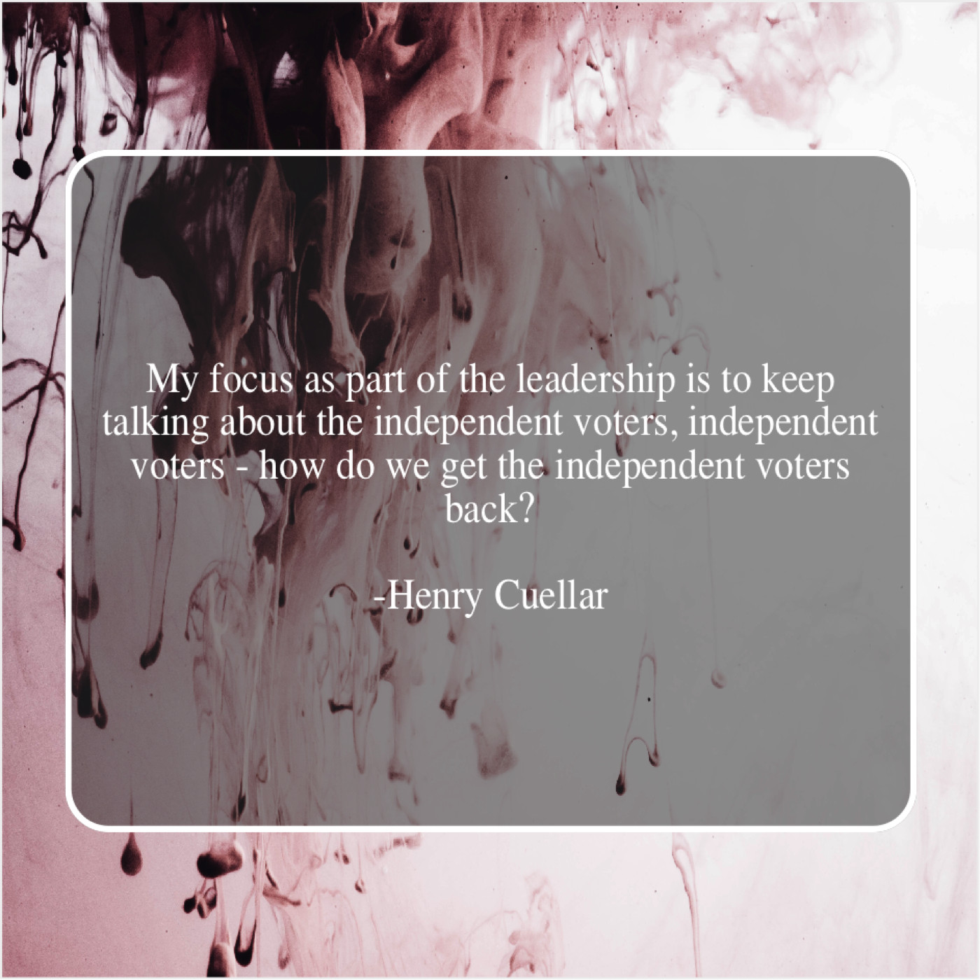 Henry Cuellar Henry Cuellar – My focus as part of… December 6, 2018 admin “My focus as part of the leadership is to keep talking about the independent voters, independent voters – how do we get the independent voters back?”-Henry Cuellar
