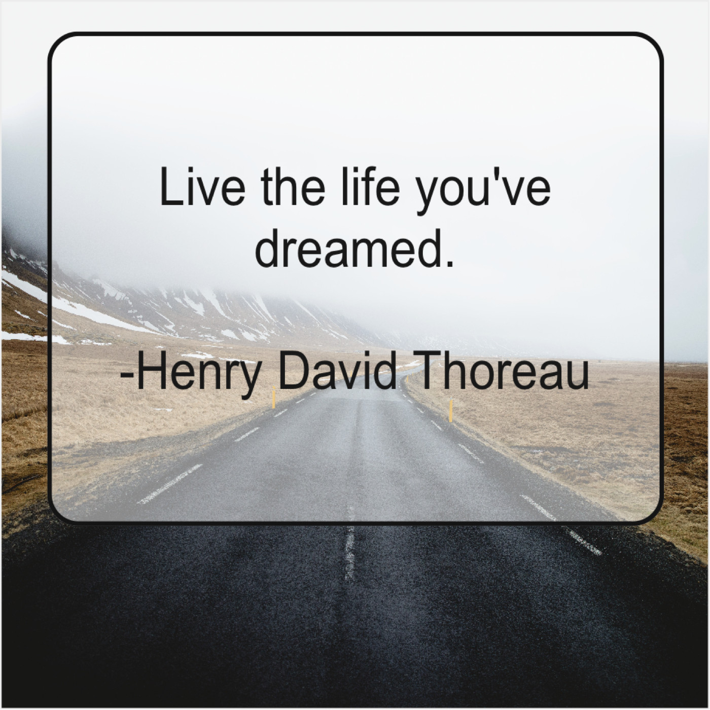 Henry David Thoreau Henry David Thoreau – Live the life you’ve dreamed… February 25, 2019 admin “Live the life you’ve dreamed.”-Henry David Thoreau