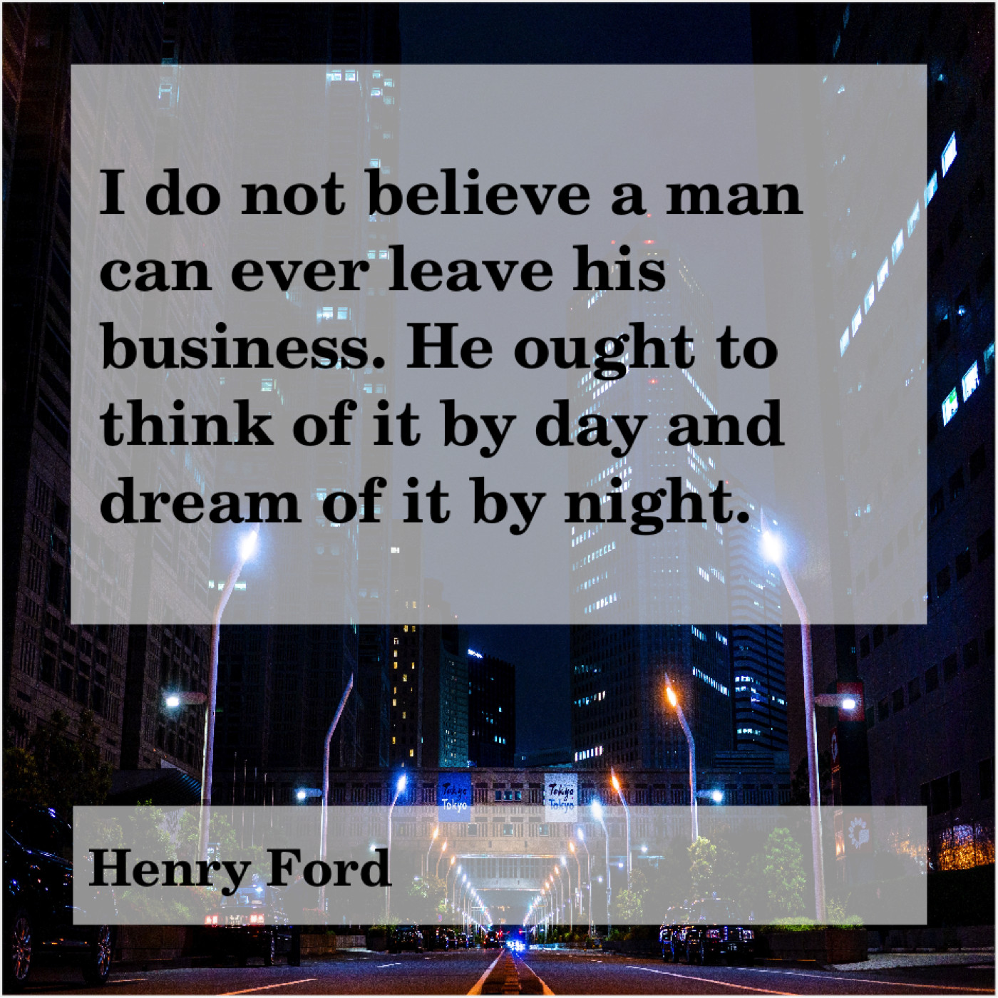 “I do not believe a man can ever leave his business. He ought to think of it by day and dream of it by night.”