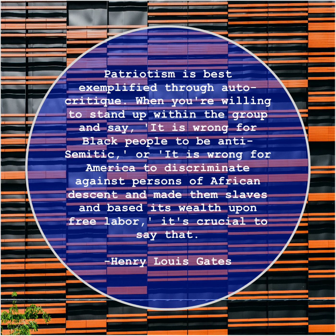 “Patriotism is best exemplified through auto-critique. When you’re willing to stand up within the group and say, ‘It is wrong for Black people to be anti-Semitic,’ or ‘It is wrong for America to discriminate against persons of African descent and made them slaves and based its wealth upon free labor,’ it’s crucial to say that.”