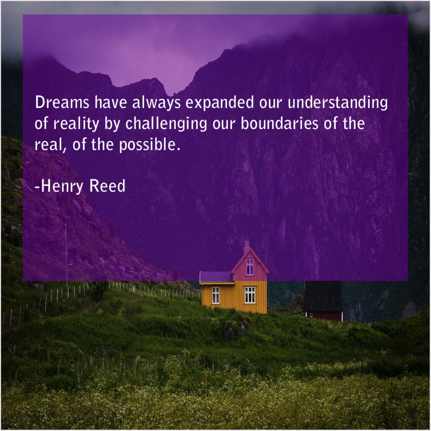 Henry Reed Henry Reed – Dreams have always expanded our… April 11, 2019 admin “Dreams have always expanded our understanding of reality by challenging our boundaries of the real, of the possible.”-Henry Reed