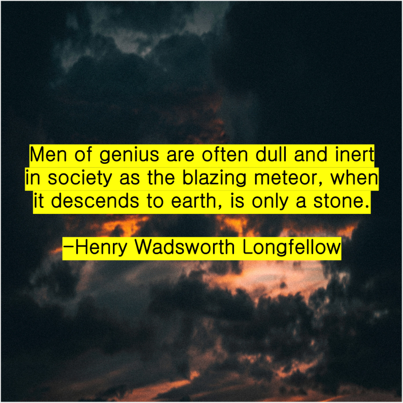 “Men of genius are often dull and inert in society as the blazing meteor, when it descends to earth, is only a stone.”