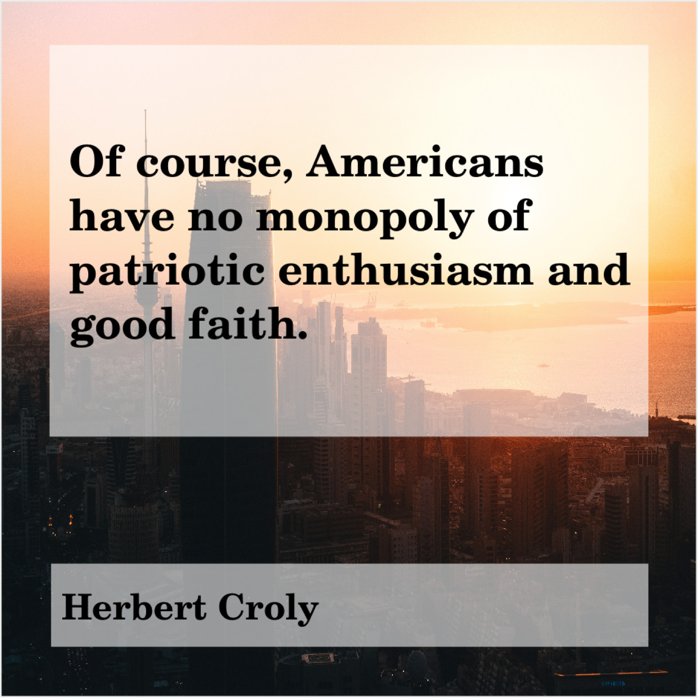 Herbert Croly Herbert Croly – Of course, Americans have no… November 1, 2018 admin “Of course, Americans have no monopoly of patriotic enthusiasm and good faith.”-Herbert Croly