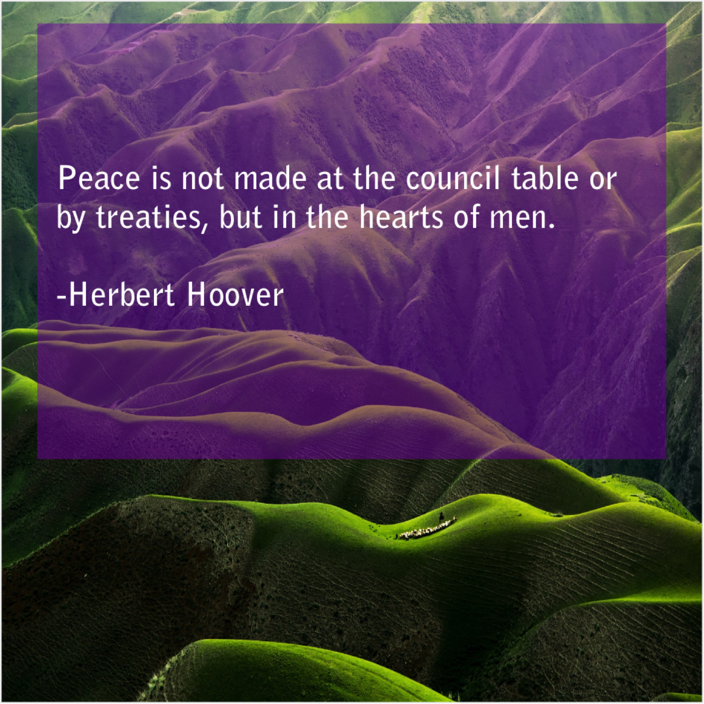Herbert Hoover Herbert Hoover – Peace is not made at… July 13, 2019 admin “Peace is not made at the council table or by treaties, but in the hearts of men.”-Herbert Hoover
